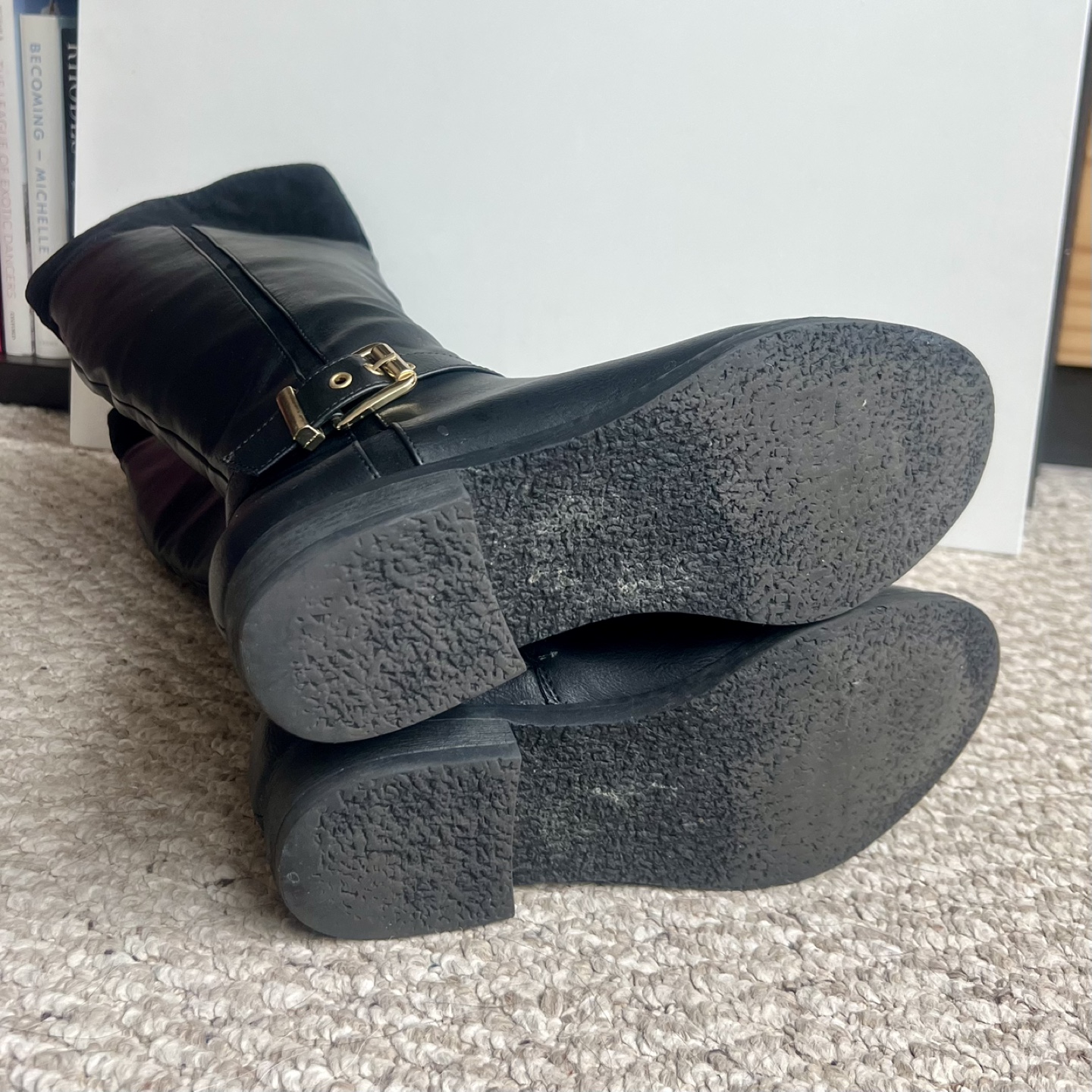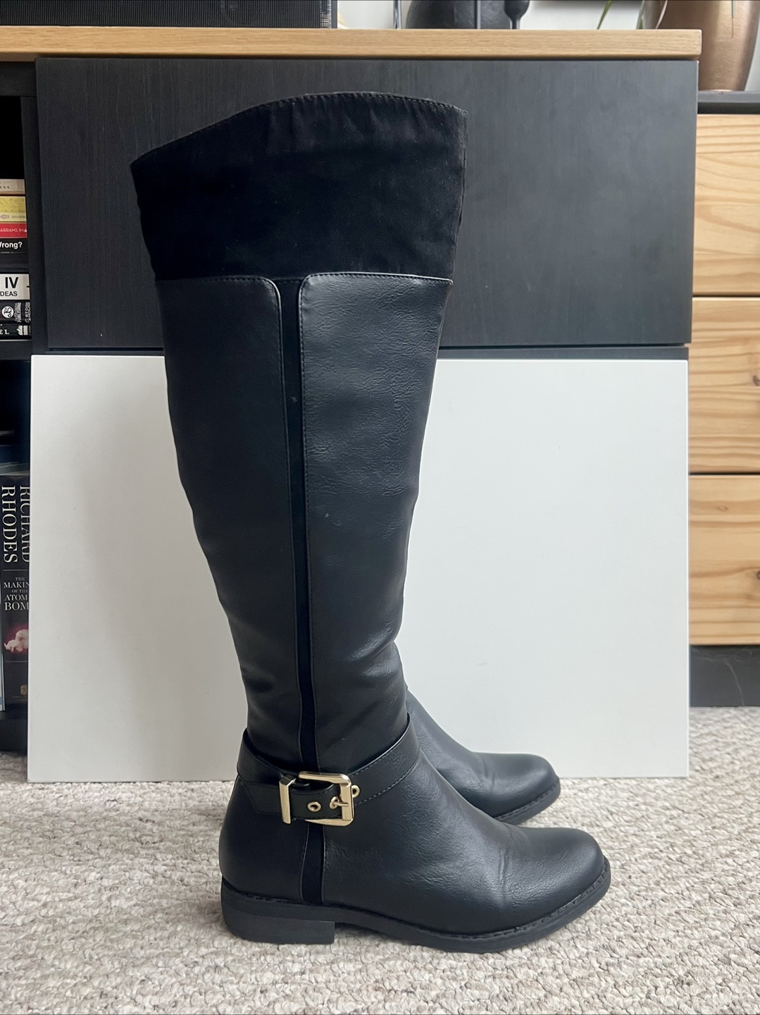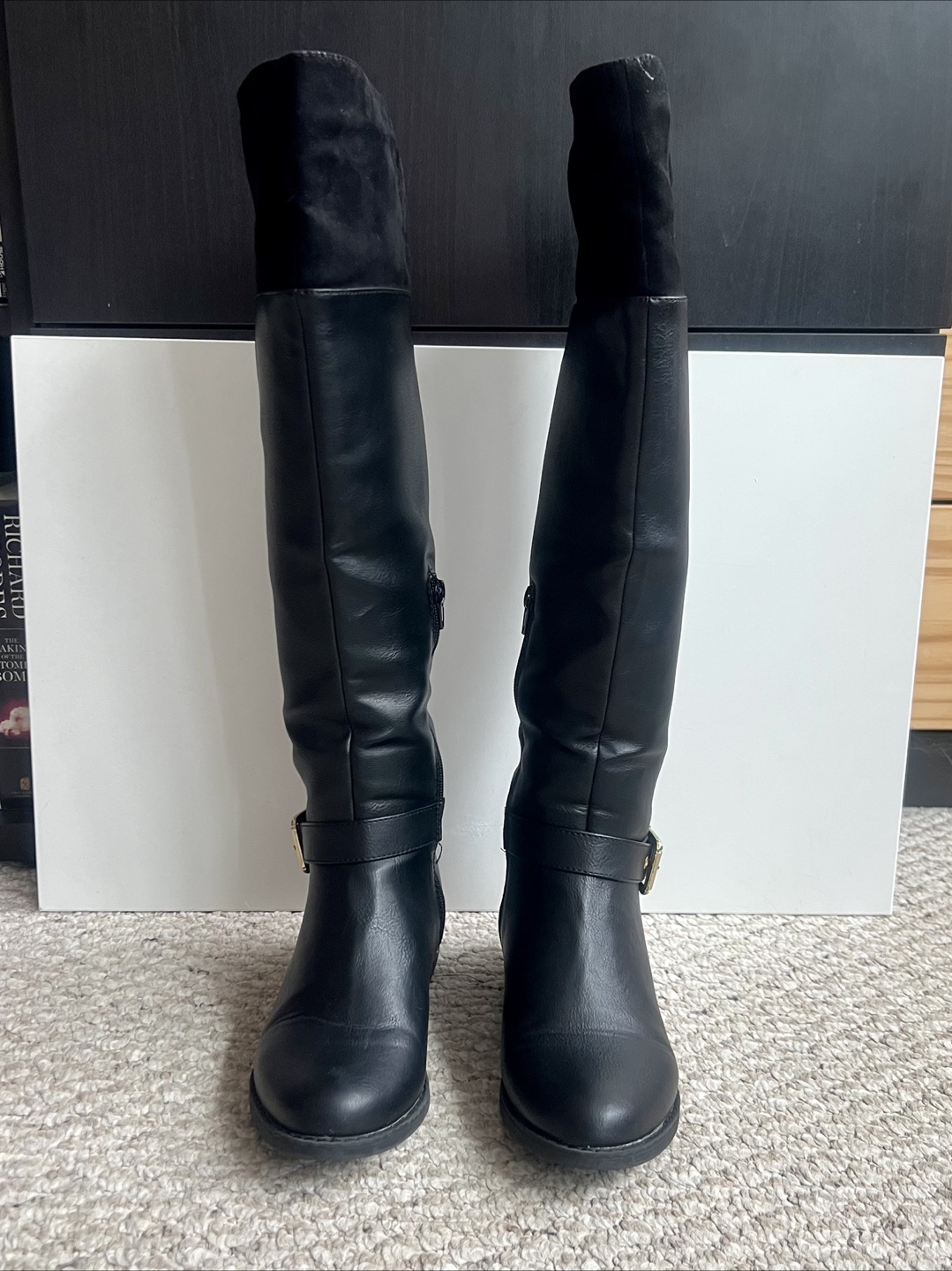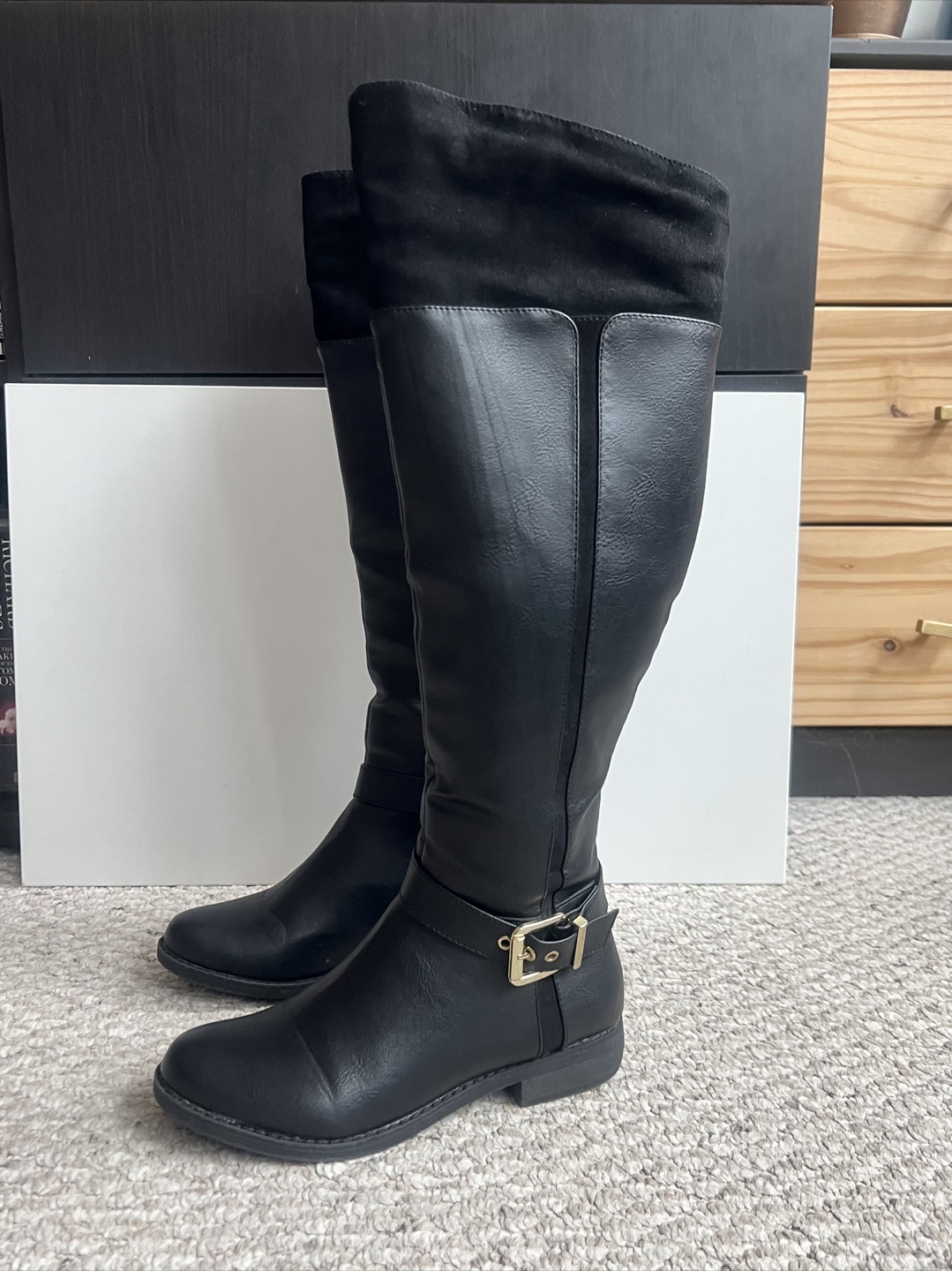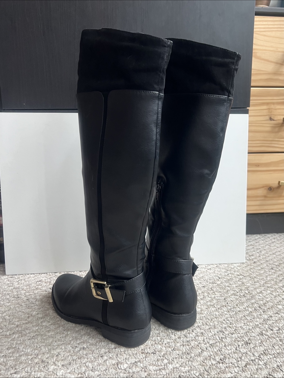 1 / 51 / 5Buy & SellBlack Knee-High Riding BootsBlack Knee-High Riding Boots$15Women's black knee-high riding boots. Faux leather upper, suede-like top. Gold buckle detail. Flat heel. Excellent condition.ConditionLike newSize8WHERE TO MEETAce HotelView MapSELLERverifiedPaulaWaterfront Communities994 reviews1 chats·2 favorites·62 viewsSEND CHAT TO SELLERHi Paula! I’m interested in your listing.Hi Paula! I’m interested in your listing.Get the Karrot app to chatSign In to chat