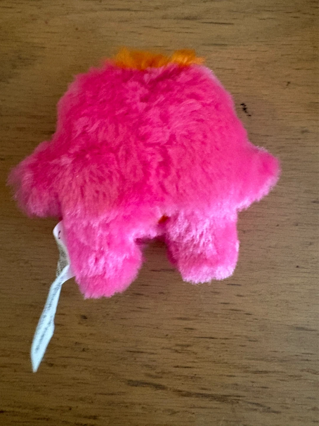 This is a fuzzy pink plush monster toy from Fugglers. It has googly eyes and a funny tongue sticking out! It's a small, squishy creature, perfect for collecting or playtime.