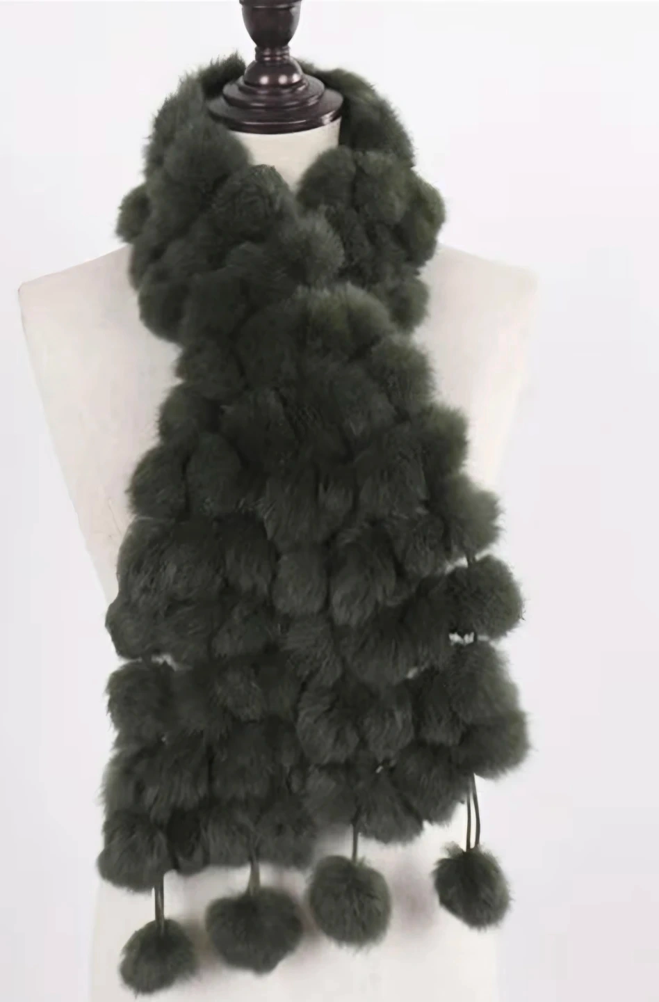 Fluffy Faux Fur Pom Pom Scarf - Olive Green