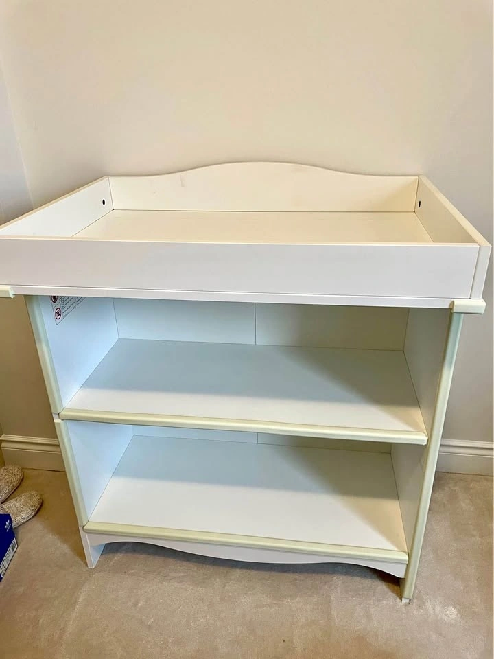 Comfortable height for changing your baby. Features practical storage space within close reach, allowing you to keep a hand on your baby at all times. Easily transforms into a spacious shelf when your child gets older. Originally $149 plus tax, selling for $80. Smoke and pet free home. Pick up only in the 404 and Major Mackenzie area. Please prepare your own moving equipment.