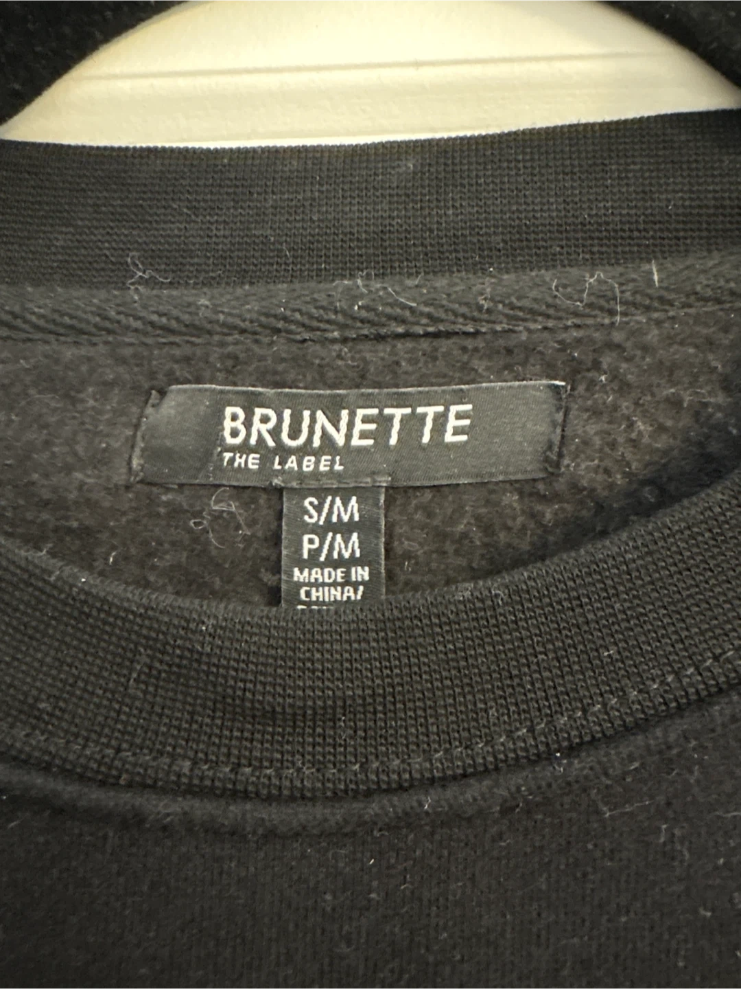 This is a black crewneck sweatshirt from Brunette The Label. It features the "Boss Babe." graphic on the front. Made in China. Size is S/M. Retails for $80.