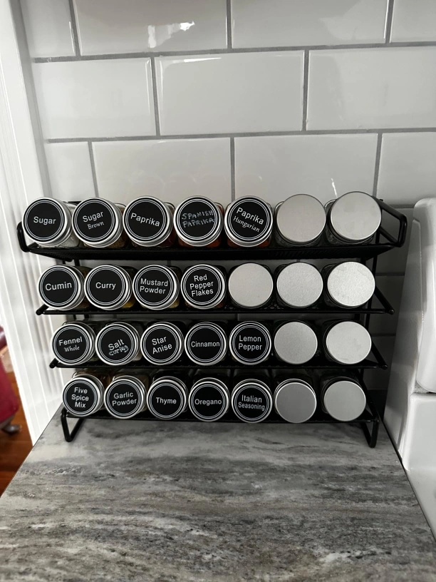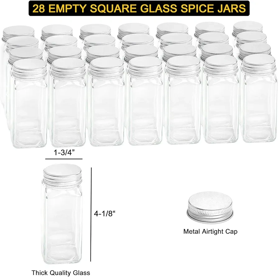 4-Tier Spice Rack Organizer with 28 Glass Jars & Labels