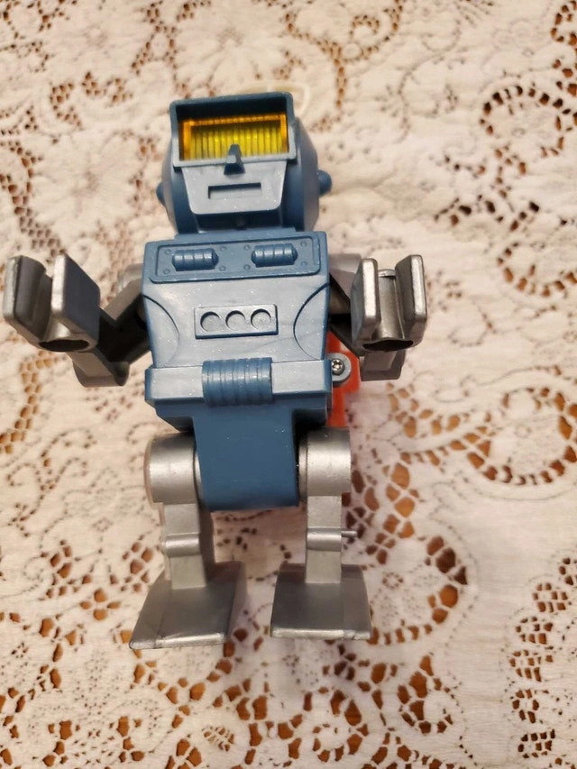 For sale as a single lot: Eldon Billy Blastoff figures and vehicles. Includes Robby the Robot figure, Lunar Crawler, Moon Tractor, and Communicator Vehicle with towing link. Vehicles are complete and roll (powered by the separate figures). Figure battery compartments are clean, but motors are untested. Robby the Robot figure has cosmetic damage: missing clear plastic cover and lever on the left leg (see photos). Available for pickup in the Pickering area (Whites Rd / Highview Ave). Check out my other ads; open to reasonable bundling offers. Thanks!