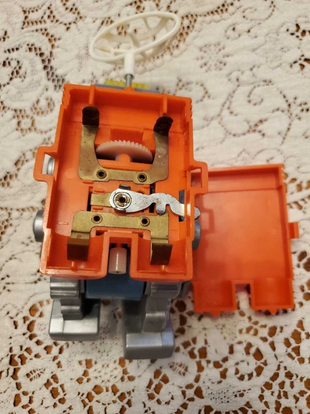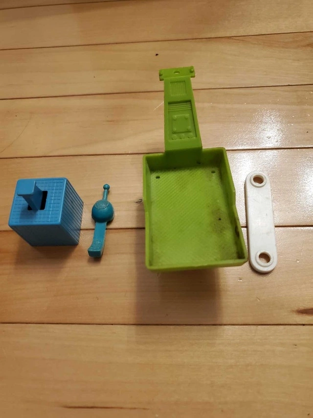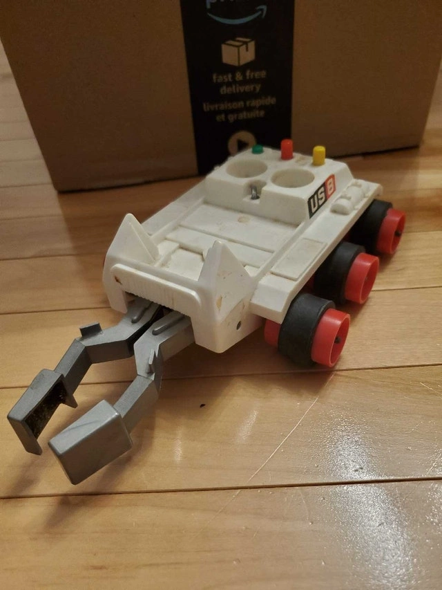 For sale as a single lot: Eldon Billy Blastoff figures and vehicles. Includes Robby the Robot figure, Lunar Crawler, Moon Tractor, and Communicator Vehicle with towing link. Vehicles are complete and roll (powered by the separate figures). Figure battery compartments are clean, but motors are untested. Robby the Robot figure has cosmetic damage: missing clear plastic cover and lever on the left leg (see photos). Available for pickup in the Pickering area (Whites Rd / Highview Ave). Check out my other ads; open to reasonable bundling offers. Thanks!