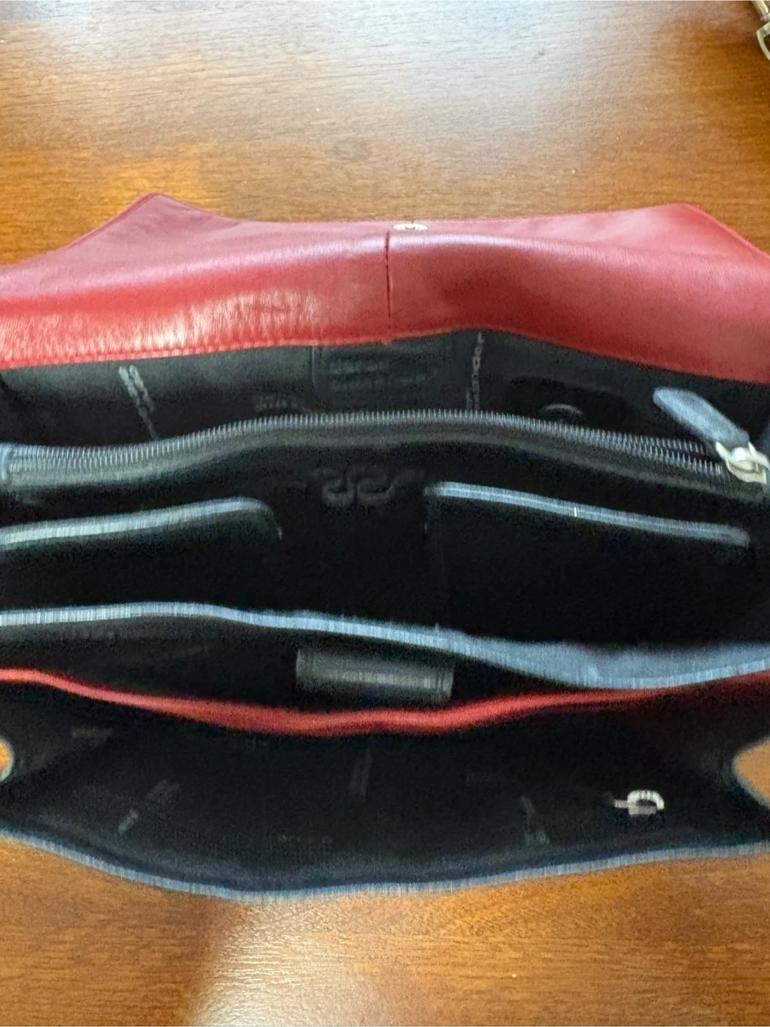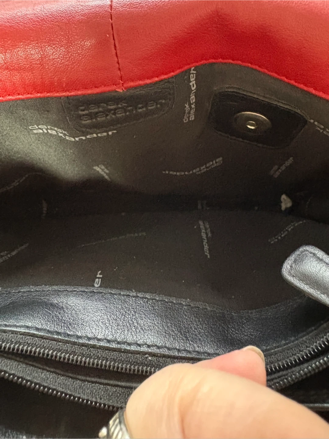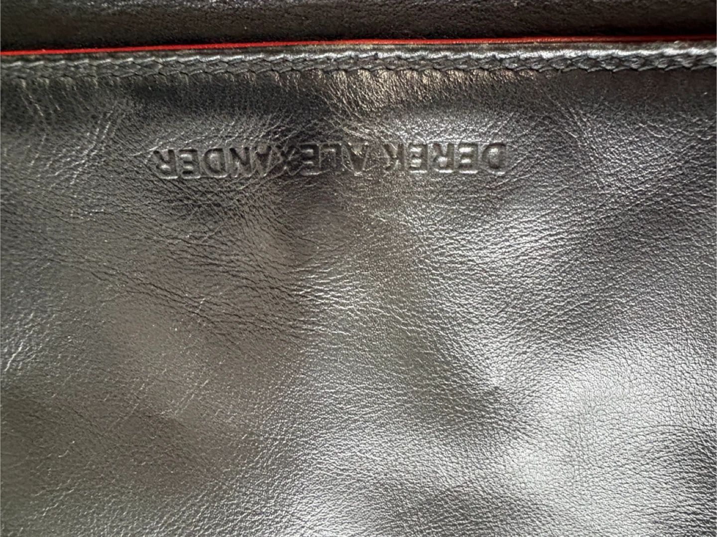 This Derek Alexander purse is made of genuine black and red leather. It features multiple card slots, this purse sells for 200.00