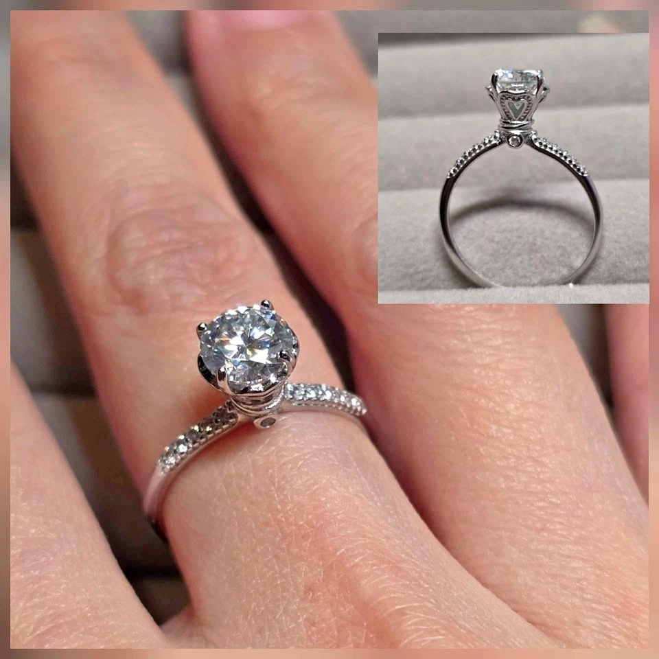 Brand New 1 carat Moissanite Ring. D Color | VVS Clarity | Sterling Silver | Hypoallergenic | Adjustable Band | Diamond Tester passed. Sparkles like a diamond — perfect for everyday luxury, bridal gifts, or timeless elegance. Pickup in East Vancouver.