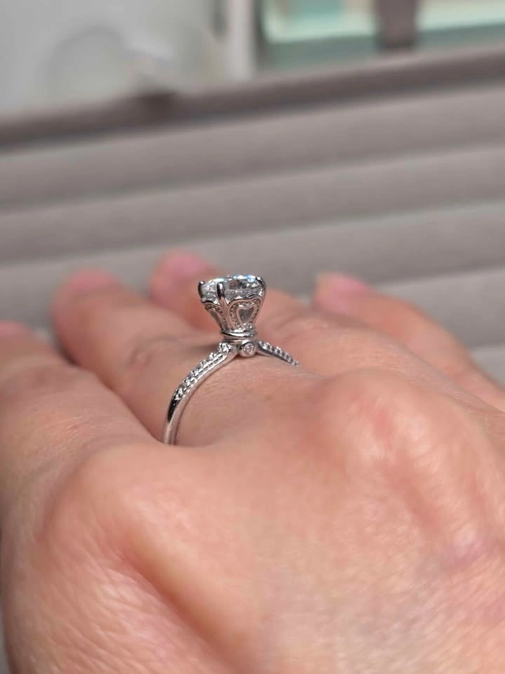 Brand New 1 carat Moissanite Ring. D Color | VVS Clarity | Sterling Silver | Hypoallergenic | Adjustable Band | Diamond Tester passed. Sparkles like a diamond — perfect for everyday luxury, bridal gifts, or timeless elegance. Pickup in East Vancouver.