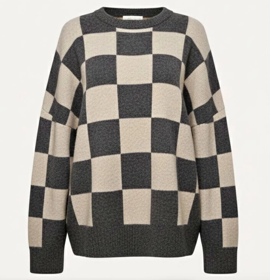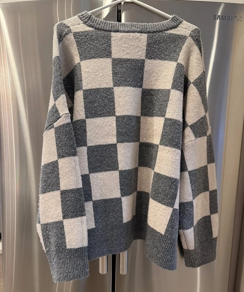 OAK + FORT Crewneck checkered Sweater - Charcoal Oatmeal size Sm