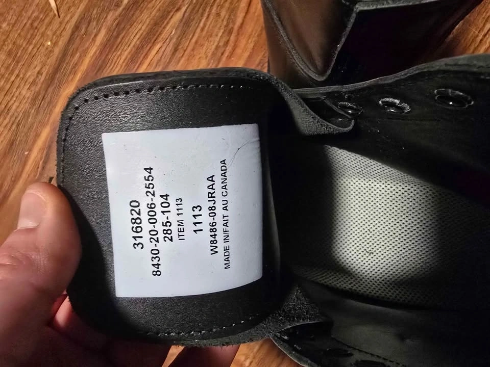 Unused Canadian Armed Forces steel-toed parade ankle boots, approximately size 11. Pick up in St. Albert. I am switching around my collectibles, so please check my other listings.
