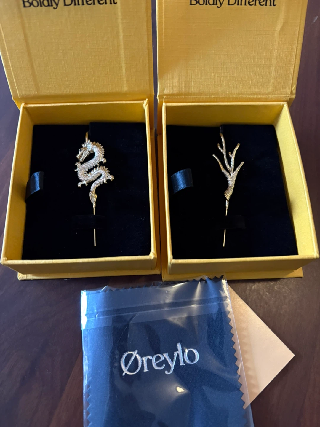 1 / 31 / 3Buy & SellØreylo Dragon & Branch EarringsØreylo Dragon & Branch EarringsFreeTwo gold earrings/cuffs, one designed as a dragon and the other as a branch. Never worn!ConditionNewBrandØreyloWHERE TO MEETCheck LocationView MapSELLERverifiedrennCrown Heights1134 reviews1 chats·3 favorites·56 viewsSEND CHAT TO SELLERHi renn! I’m interested in your listing.Hi renn! I’m interested in your listing.Get the Karrot app to chatSign In to chat