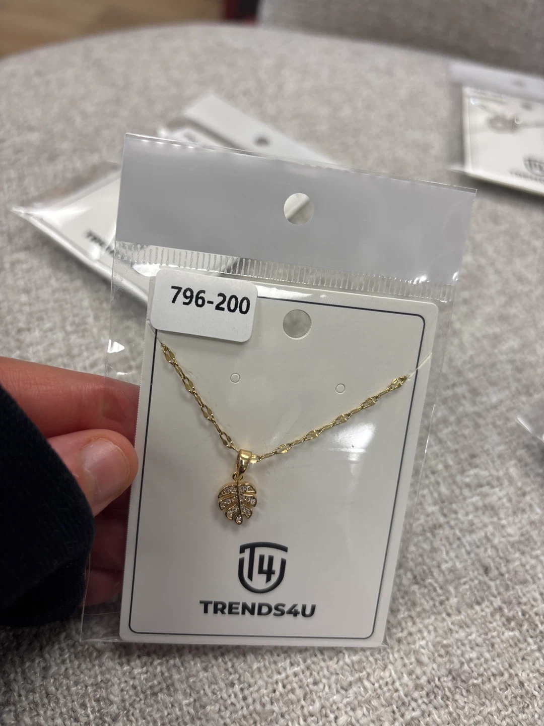 This TRENDS4U necklace features a delicate gold chain with a charming leaf-shaped pendant. The pendant is adorned with small, sparkling stones. It's a lovely accessory for everyday wear.