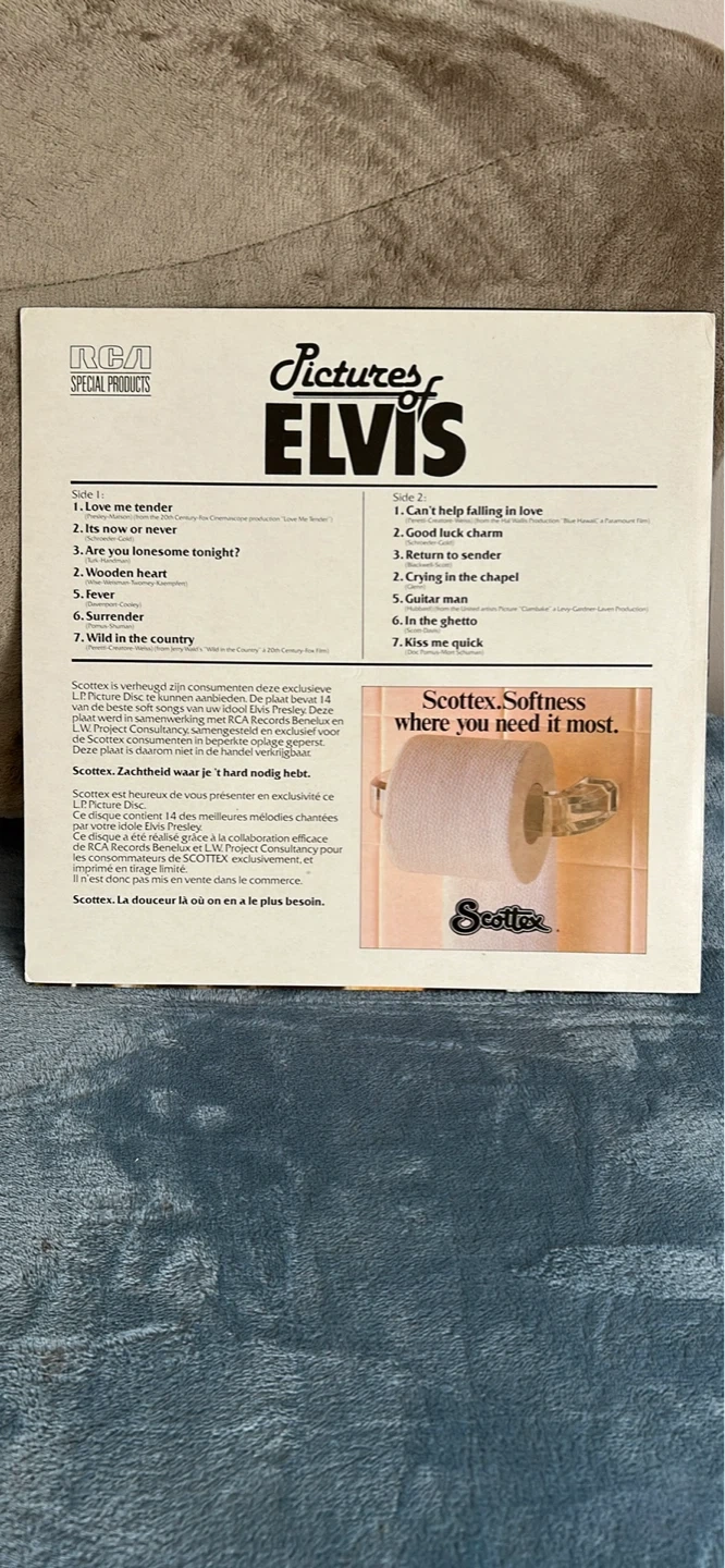 This is the 'Pictures of Elvis' vinyl record from RCA Special Products. It features a collection of Elvis Presley songs. Vinyl record album.