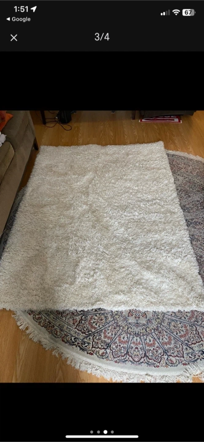 π₯ Cozy cream shaggy rug. It's soft to the touch and provides a comfortable feel underfoot. Adds warmth to any room! 5 x 7 foot