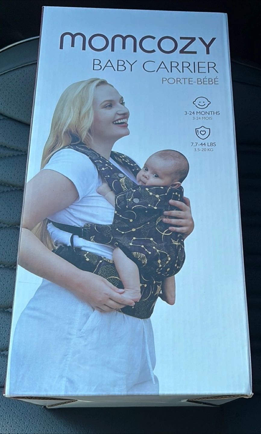 Selling a Momcozy baby carrier, suitable for babies aged 3-24 months or weighing 7.7-44 lbs (3.5-20 kg)