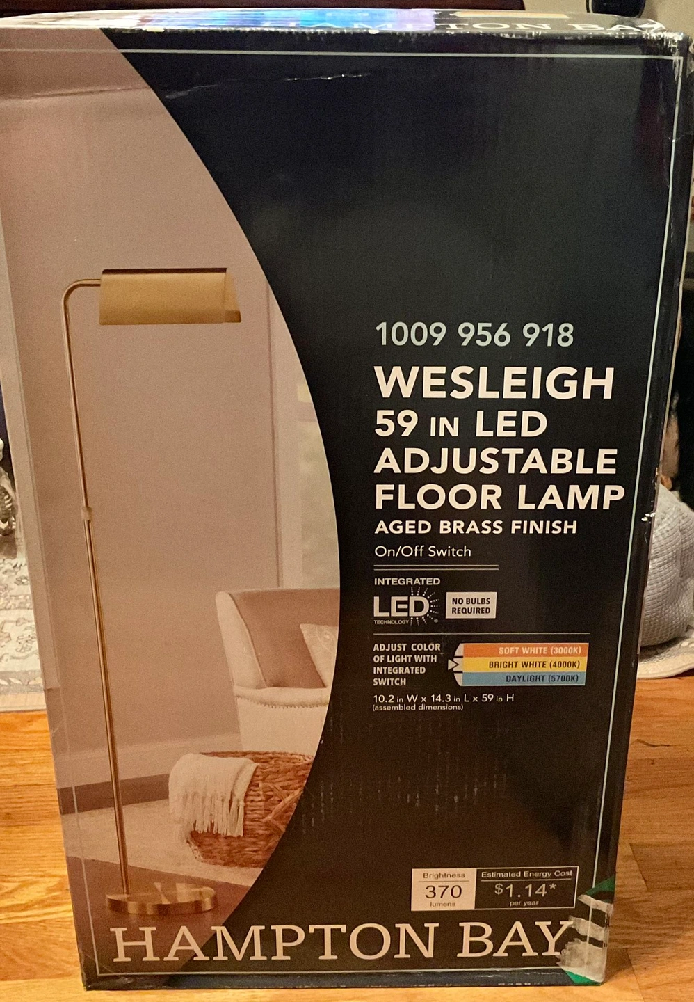 Wesleigh 59 in. Aged Brass Standard LED Indoor Floor Lamp 3 CCT Dimmer Switch with Brass Metal Shade