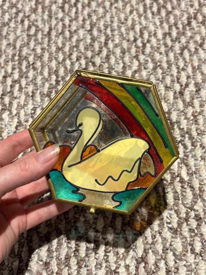 Buy & SellVintage Swan Glass Jewelry JarVintage Swan Glass Jewelry Jar$15Great condition swan jewelry holder.WHERE TO MEETHomeView MapSELLERVictoria LambertWelland25520 reviews0 chats·1 favorites·2 viewsSEND CHAT TO SELLERHi Victoria Lambert! I’m interested in your listing.Hi Victoria Lambert! I’m interested in your listing.Get the Karrot app to chatSign In to chat