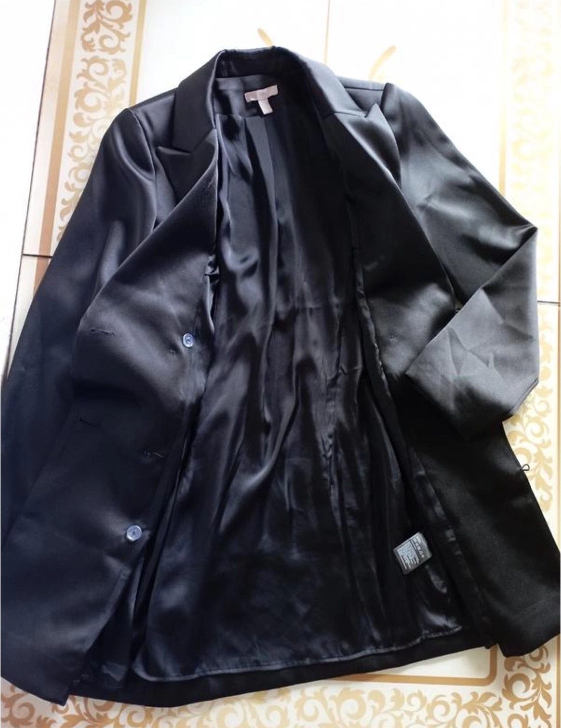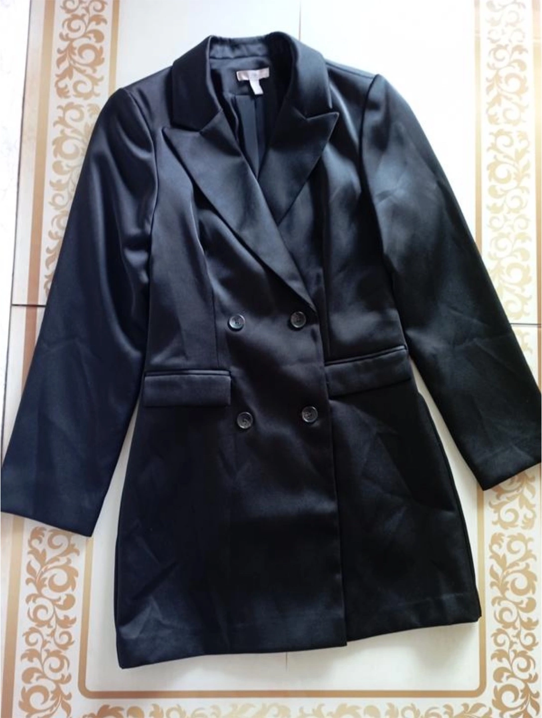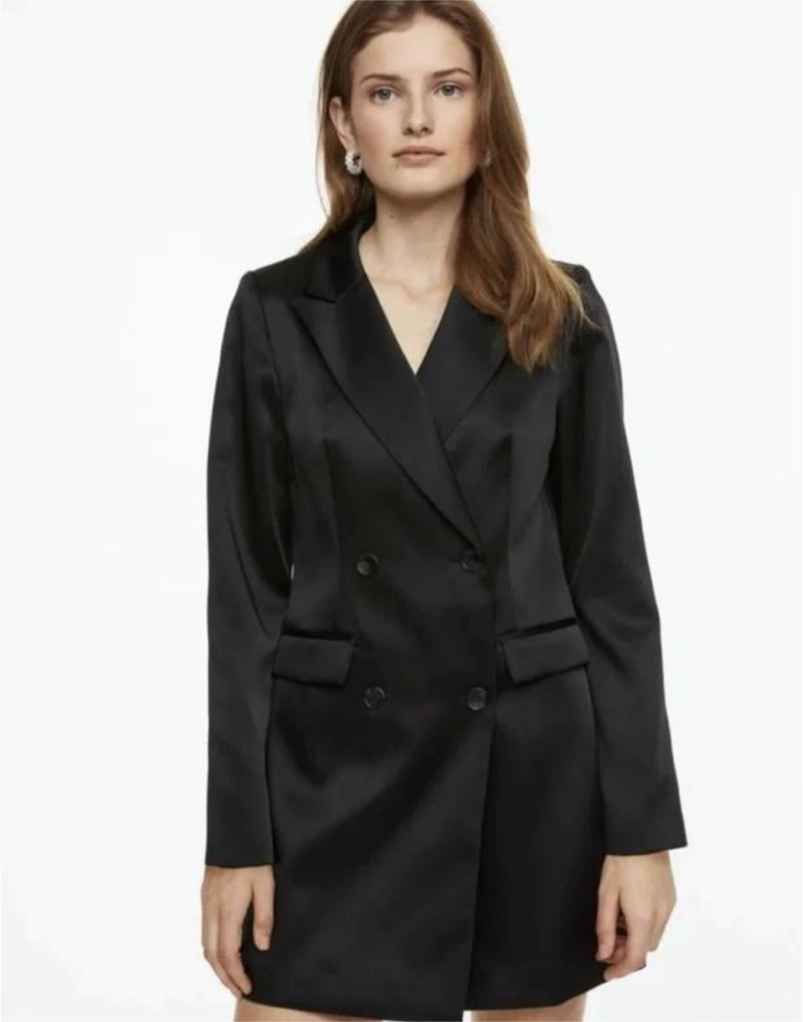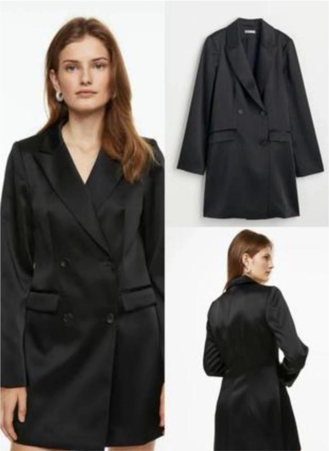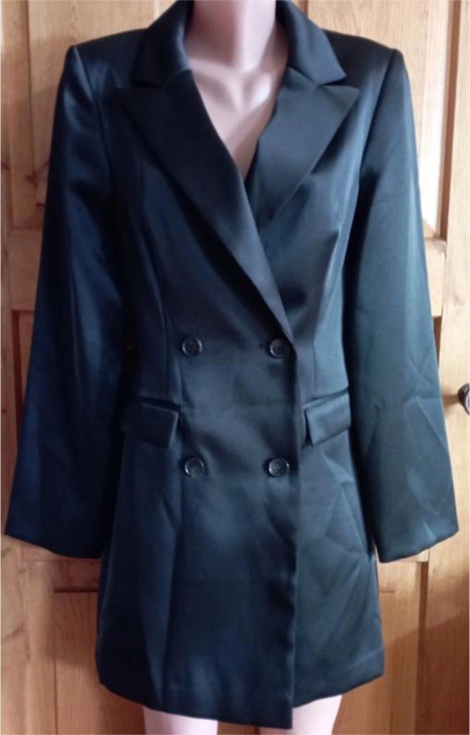 Black Satin Double-Breasted Blazer Dress