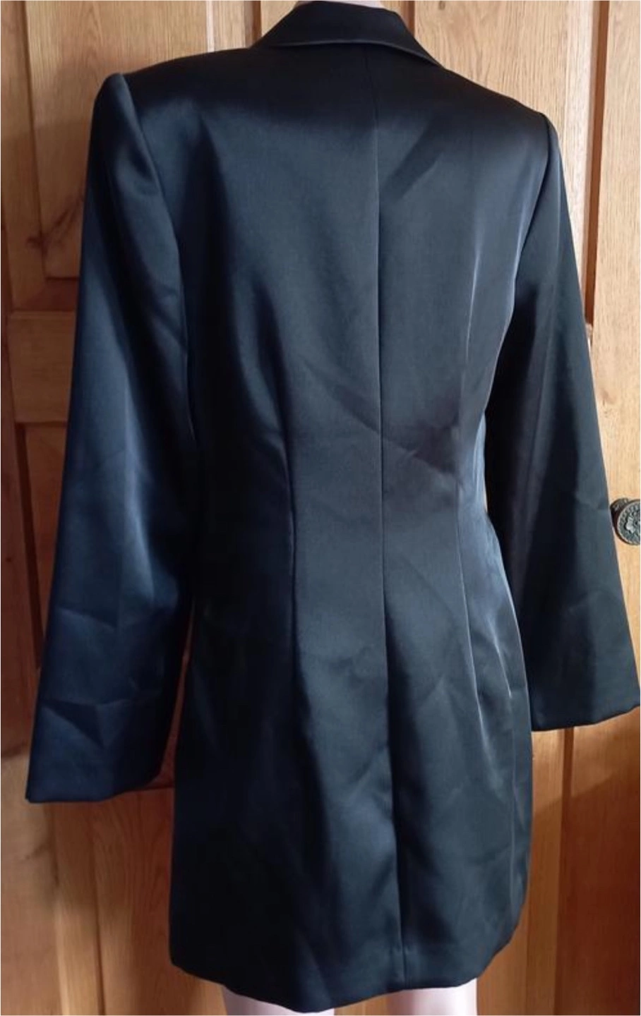 Black Satin Double-Breasted Blazer Dress