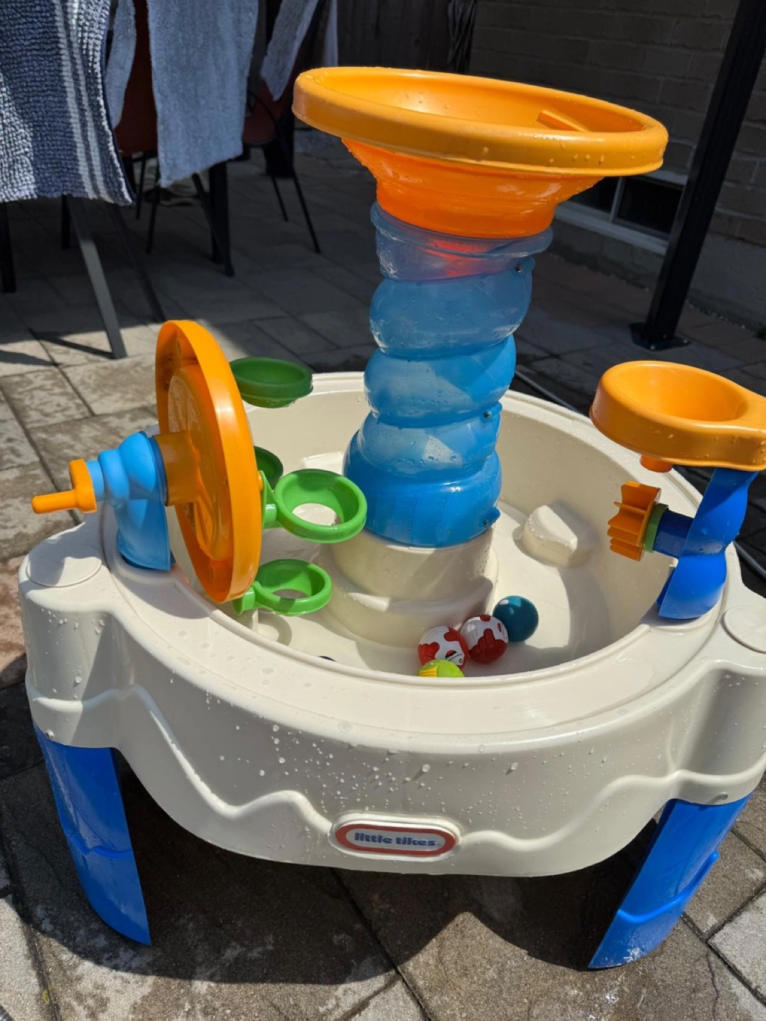 This Little Tikes Fun Zone Dual Twister water table is perfect for some backyard fun! It's in great condition and ready for a new home. The bright colours and interactive features will keep the kids entertained for hours.
