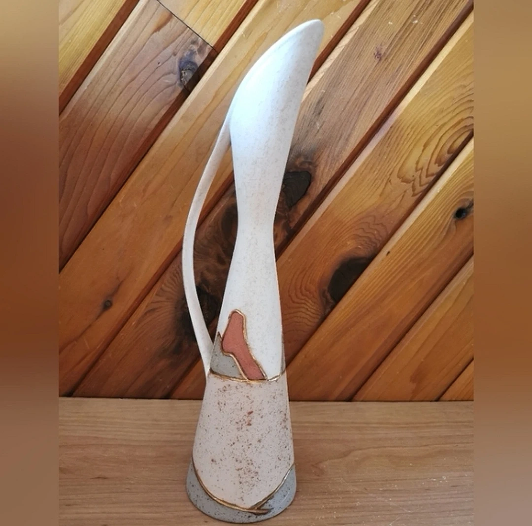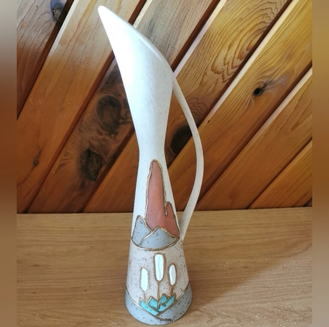 Gorgeous Vintage Tall Native American Southwestern Inspired 22k Studio Pottery Pitcher Vase. Made with 22k Gold Accents, Staffan Gallery. Rare Find.