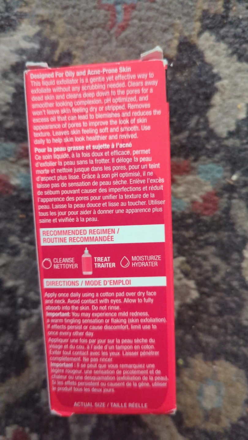 This liquid exfoliator is for acne-prone skin. It gently yet effectively cleans without scrubbing, going deep to unclog pores. It removes excess oil and makeup, clears blemishes, and reduces pore appearance. Use daily to help skin feel smooth and look clear.