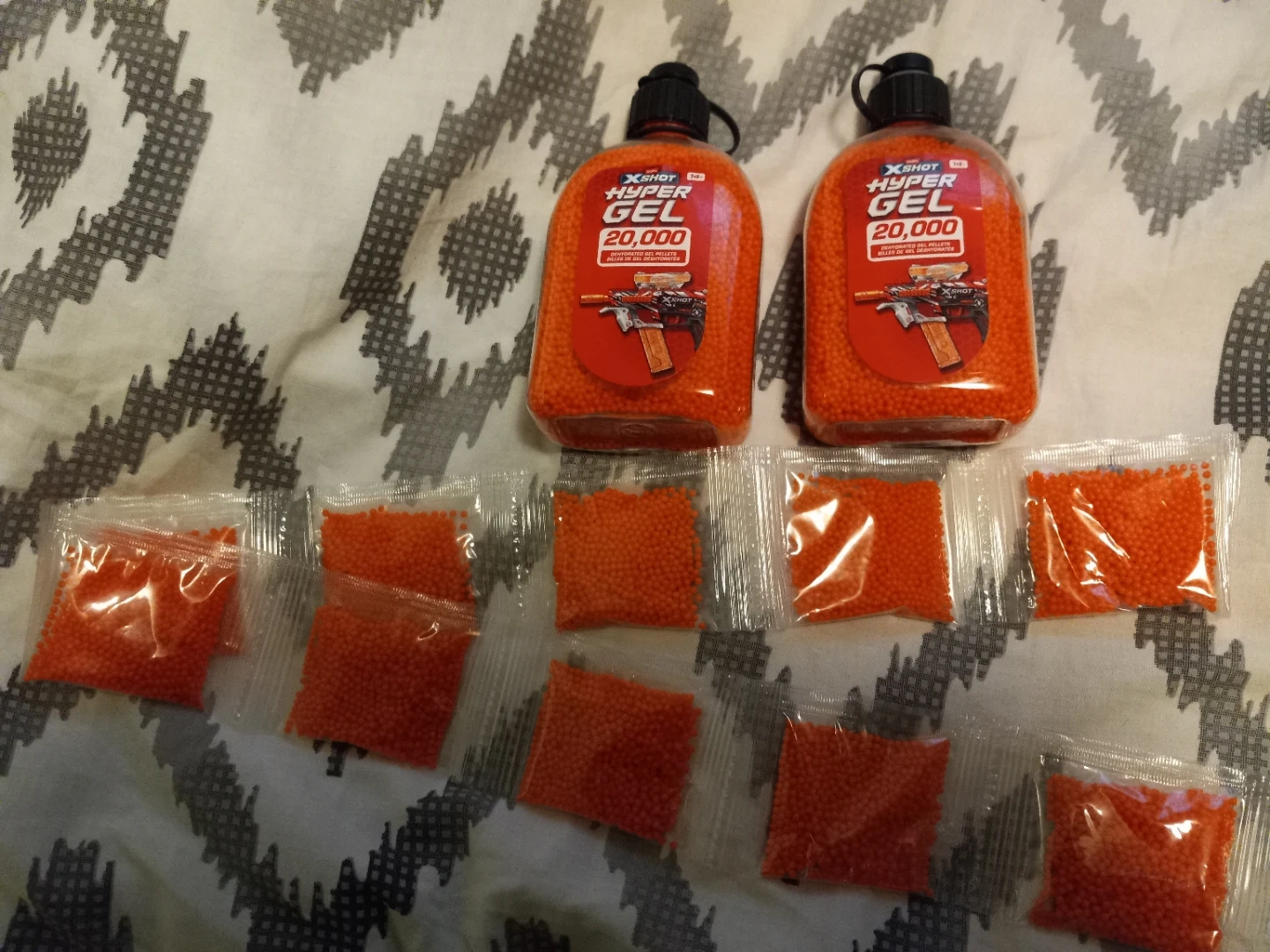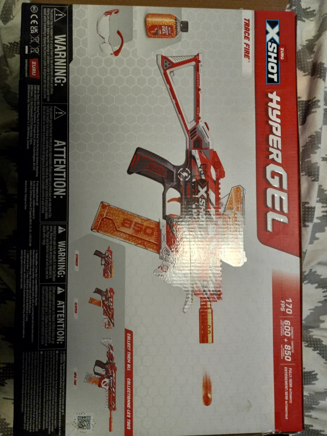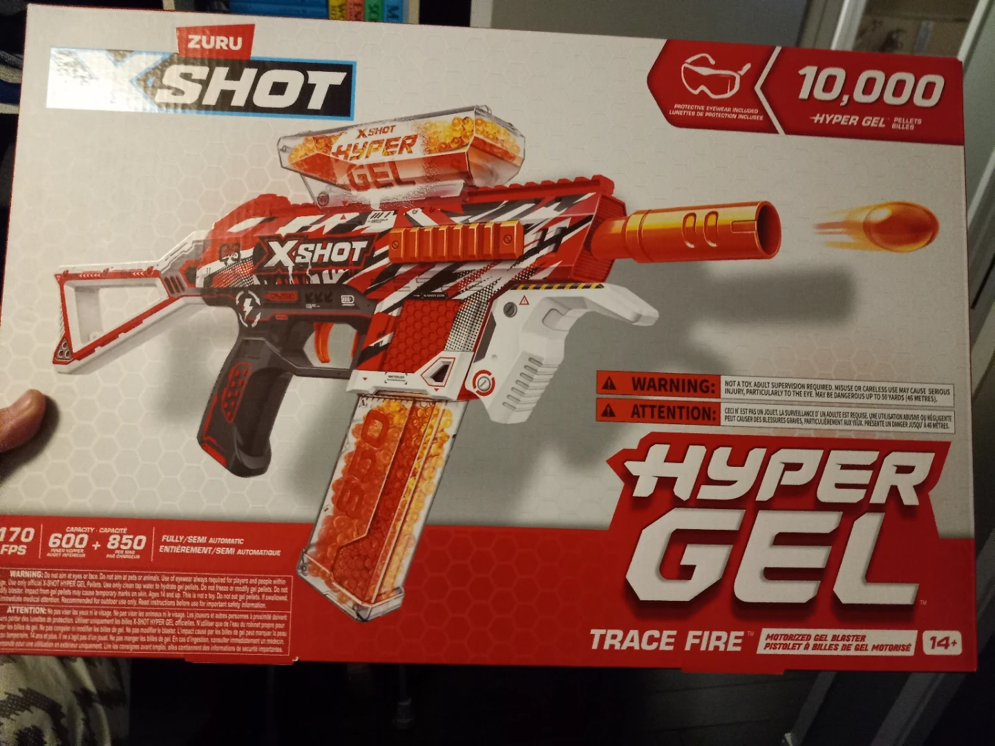 Selling a Zuru XShot Hyper Gel Trace Fire Blaster. It is a motorized gel blaster pistol. The capacity is 600 + 850. It shoots at 170 FPS. It is fully/semi automatic. It comes with 1bottles of 20,000 hyper gel. Extra 60,000 gel pellets. Extra (2 bottles of 20,000 gel pellets and several unopened packs of gel pellets as well).