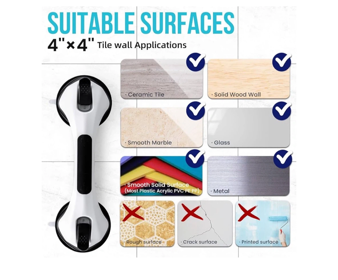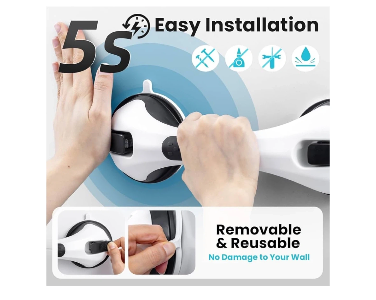 TAILI Shower Suction Grab Bars for Bathtubs, Removable Handrails for Elderly and Seniors, No Drilling Waterproof, Black, 12 Inch