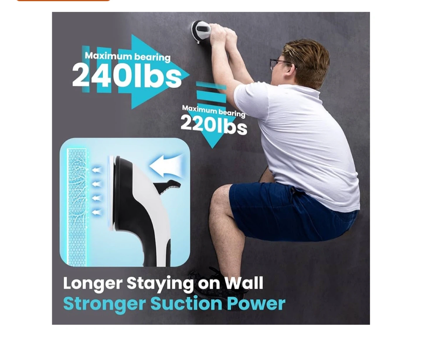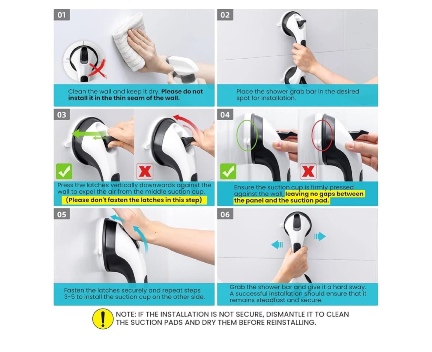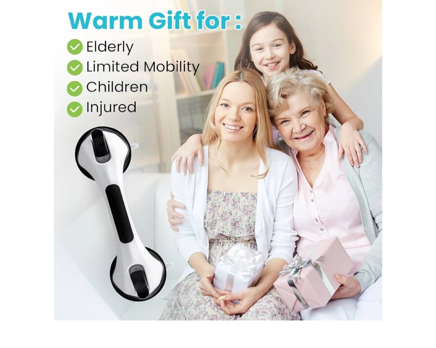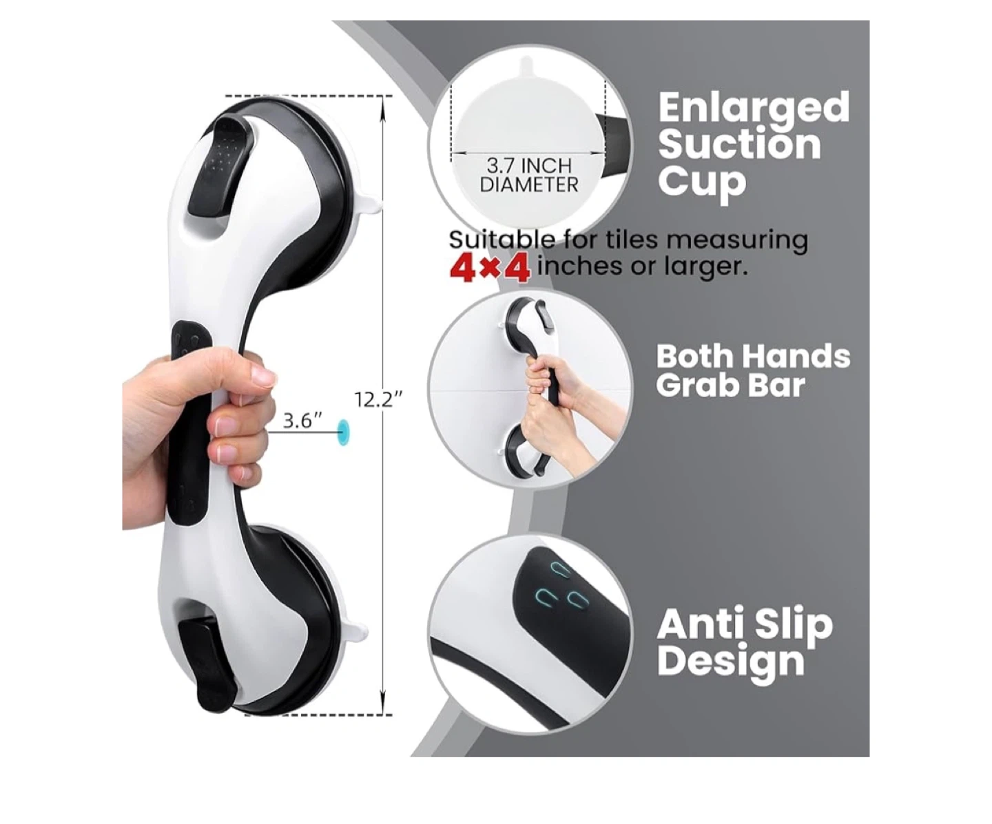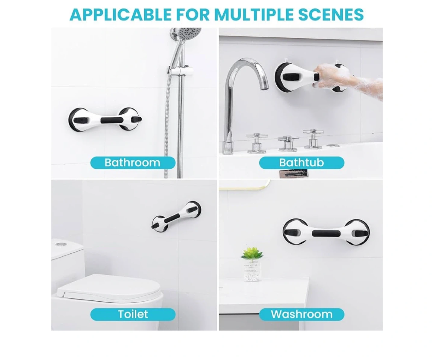 TAILI Shower Suction Grab Bars for Bathtubs, Removable Handrails for Elderly and Seniors, No Drilling Waterproof, Black, 12 Inch