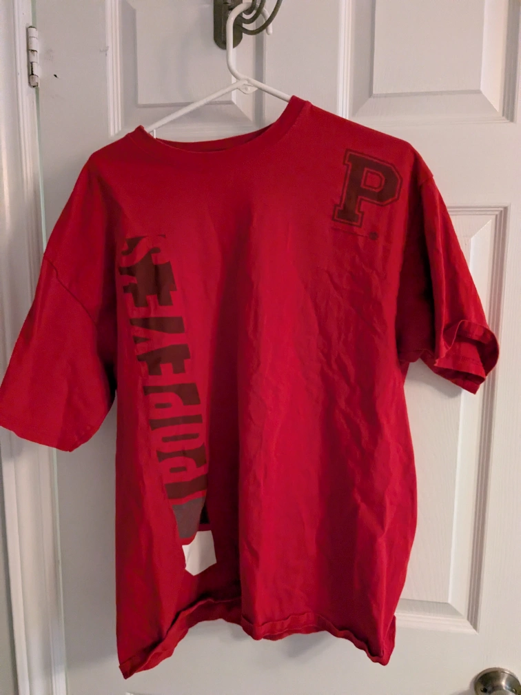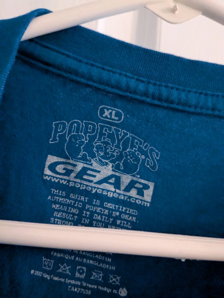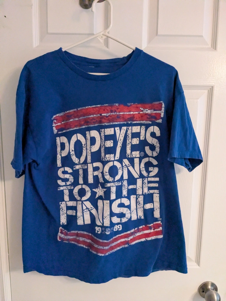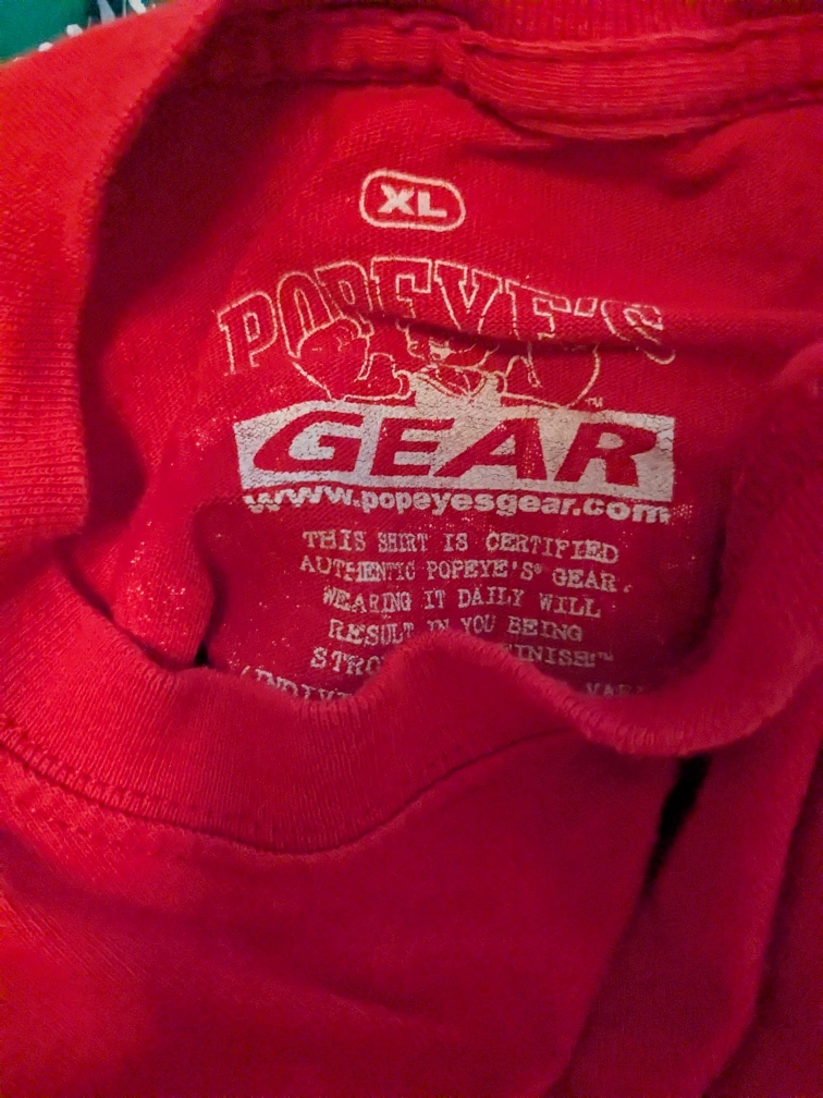 Three Popeye's t-shirts. All three for $5. No tears, stains, musty smells. Pick up is in Burlington.