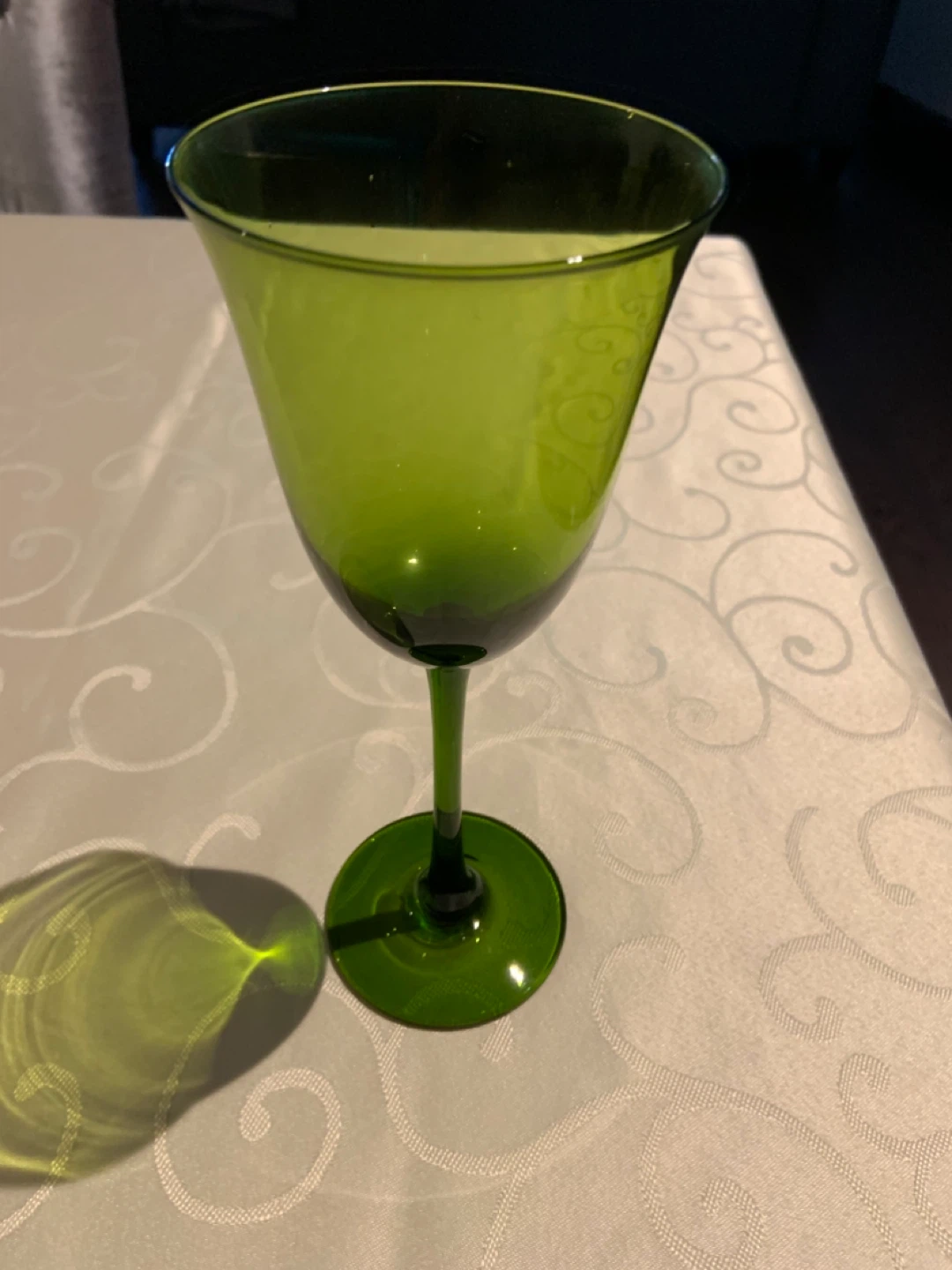 Here's a lovely green wine glass! It's in great shape and would be a nice addition to any home bar or dining set. Have 24 only used once for a family gathering .