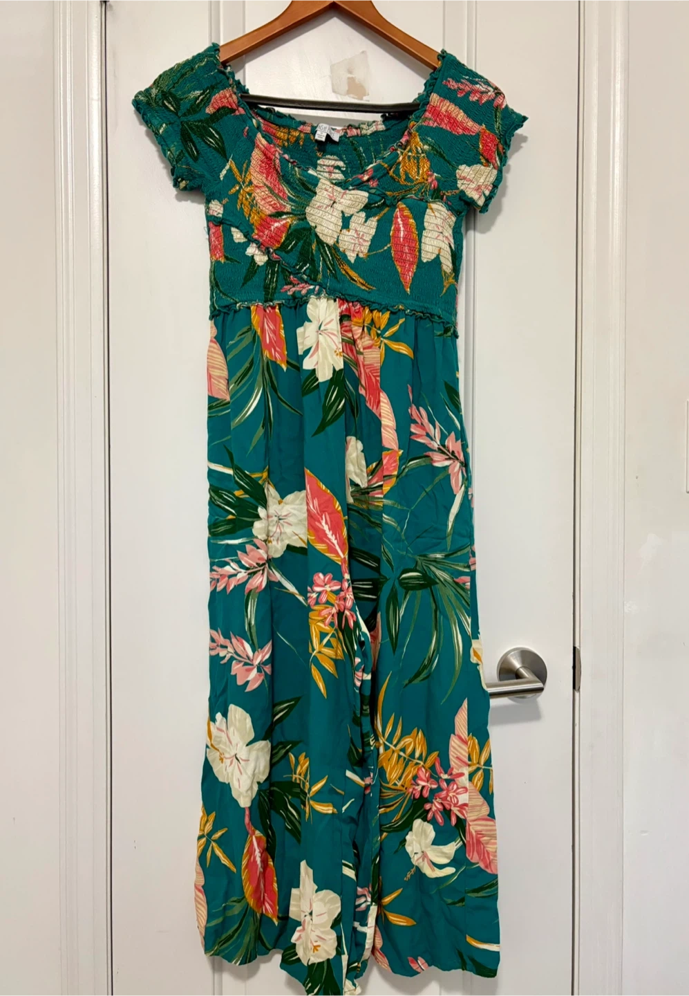 Like-new women’s wide leg long jumpsuit. Perfect for spring! Size medium. Stretchy waist and bust area. Pickup near Sherbourne and Adelaide St East or sometimes at some TTC stations.