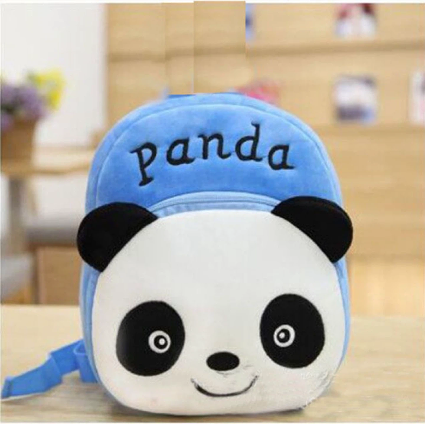 Super cute panda backpack for kids! It's a light blue plush material with a panda face on the front. Perfect for carrying small items or toys