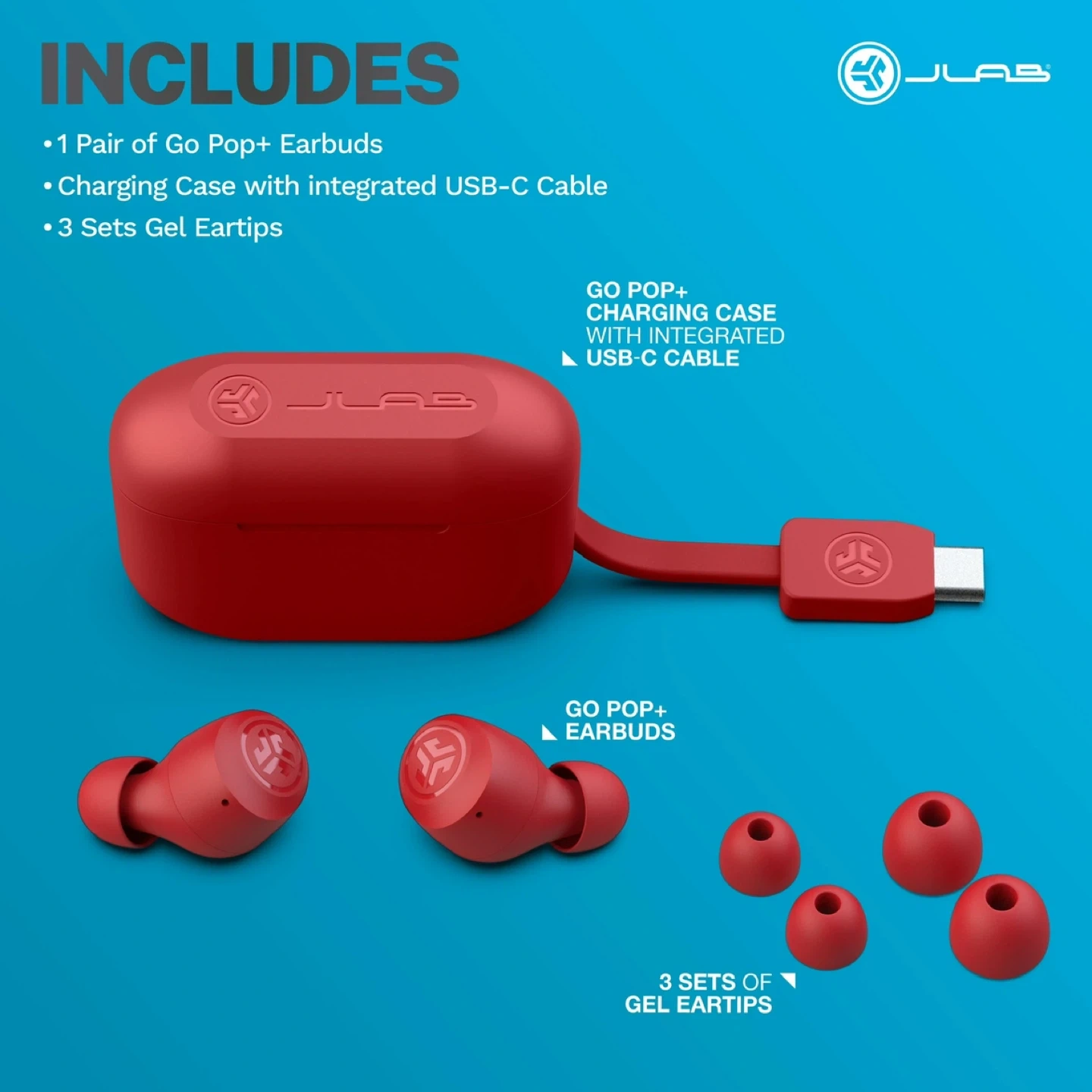 JLab Go Pop+ True Wireless Earbuds - Red