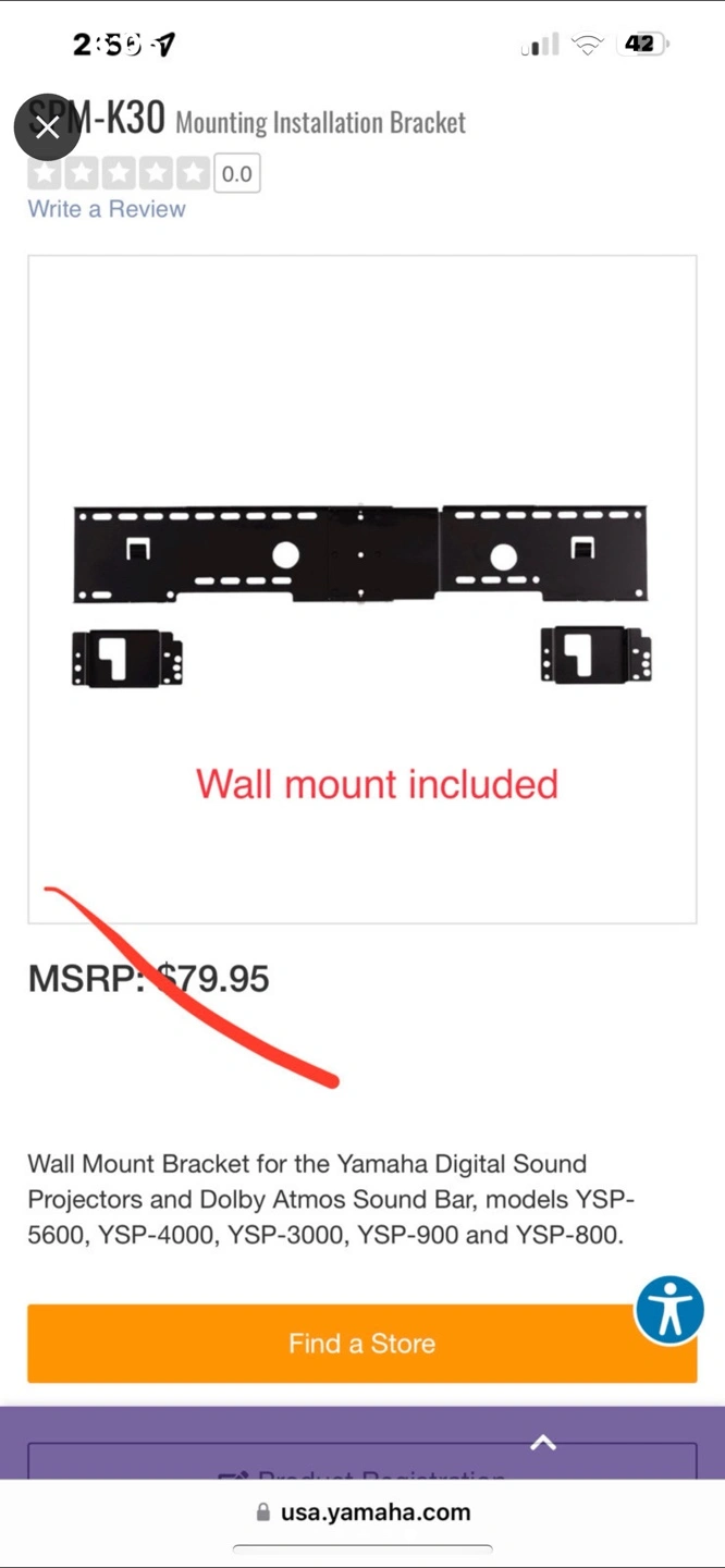 Yamaha YSP-800 Digital Sound Projector with Wall Mount