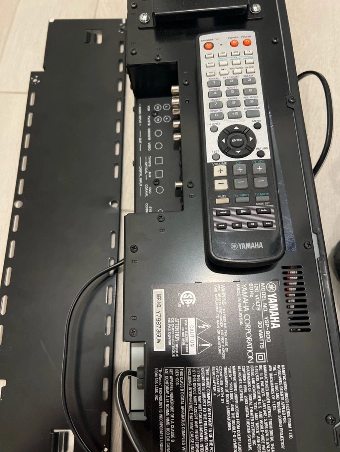 Yamaha YSP-800 digital sound projector. Includes remote and wall mount bracket. Features Dolby Pro Logic II and SRS TruBass. Excellent sound quality. Great for home theatre setups.
