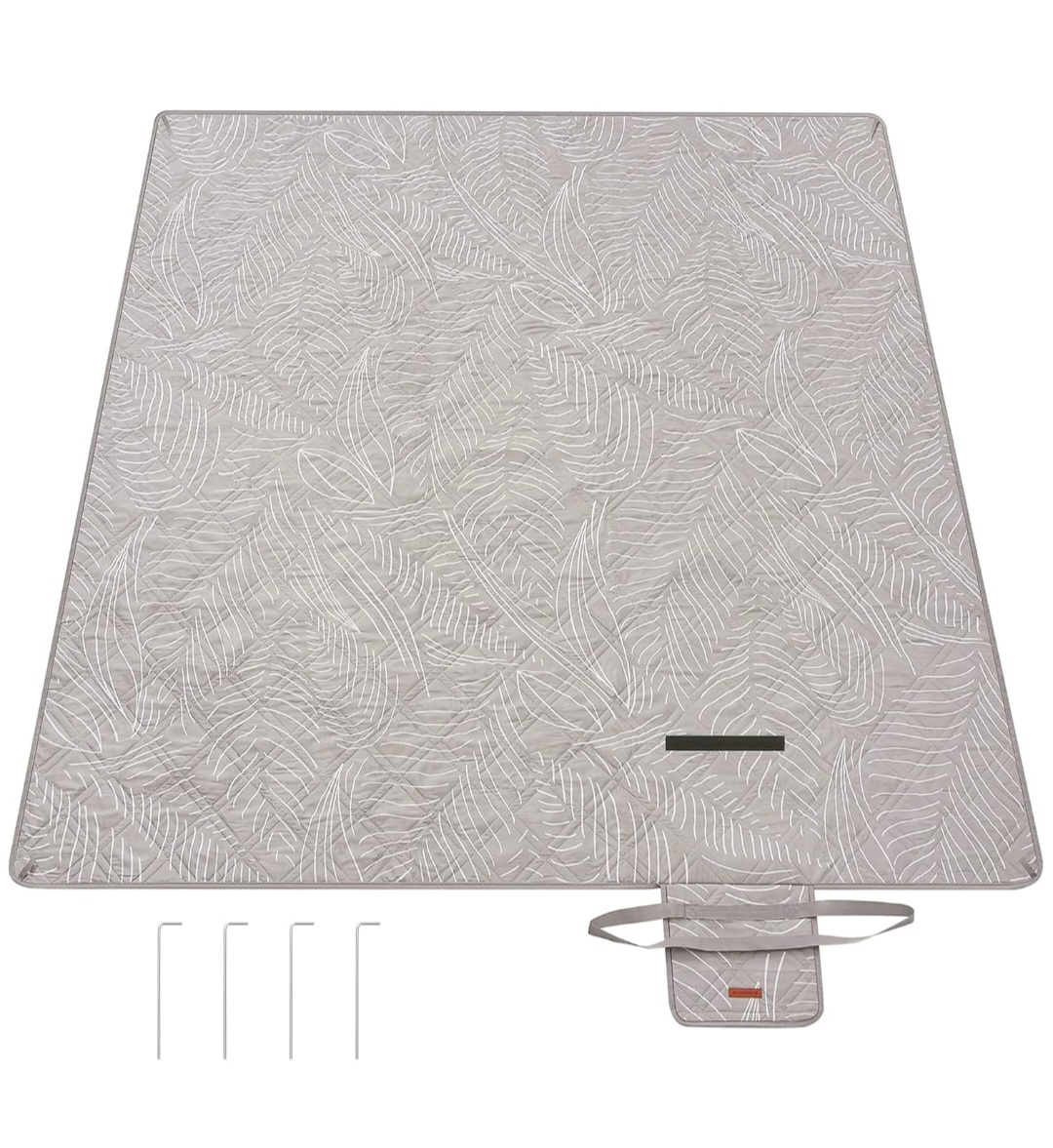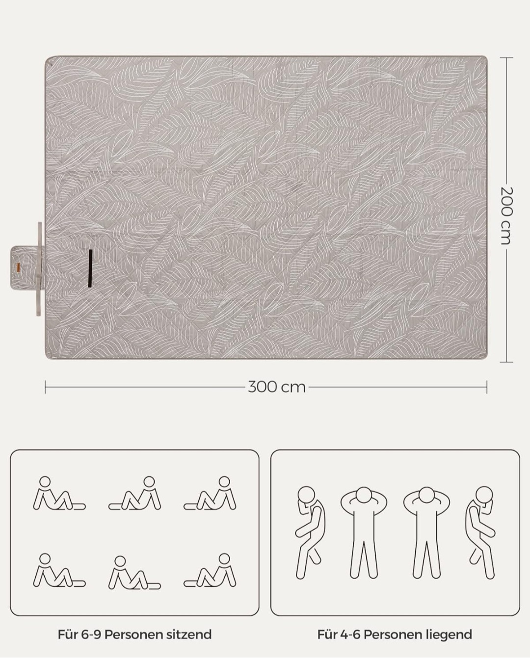 SONGMICS Picnic Blanket 300 x 200 cm with 4 Ground Anchors Large Camping Blanket Park Garden Beach Waterproof Machine Washable Foldable Khaki with Tropical Fern GCM010B03