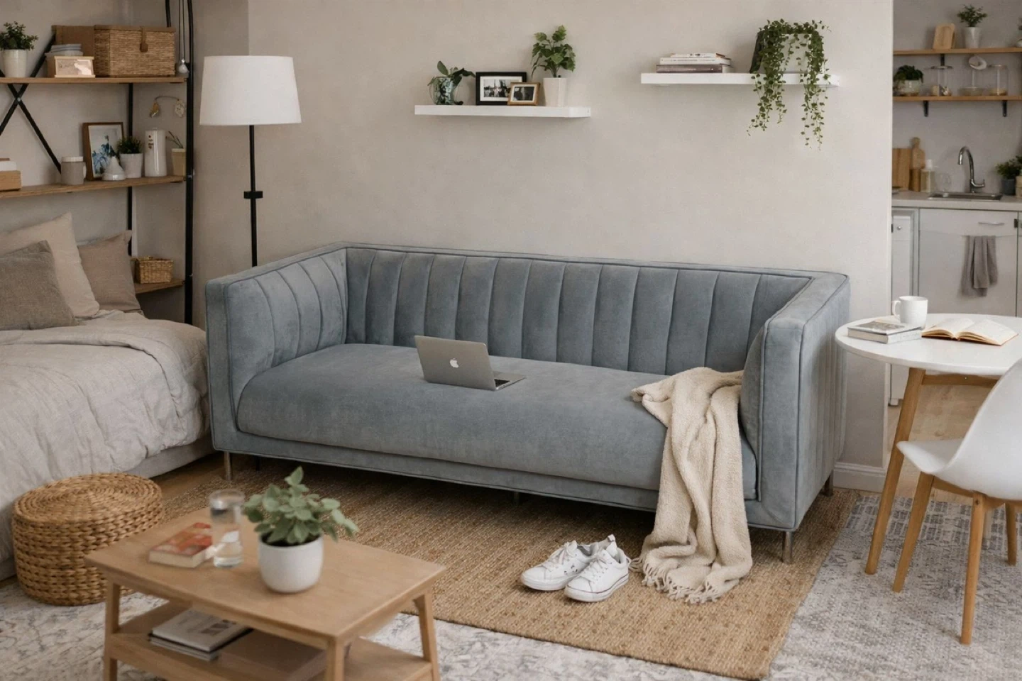 Brand New Modern Velvet Sofa – Light Grey – Never Used