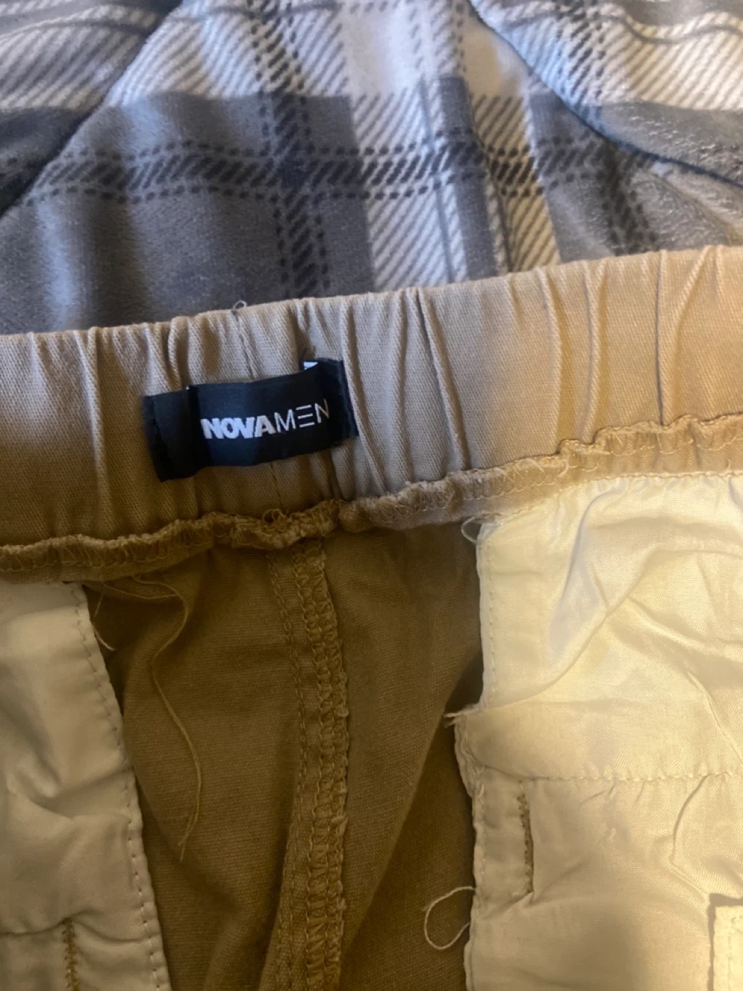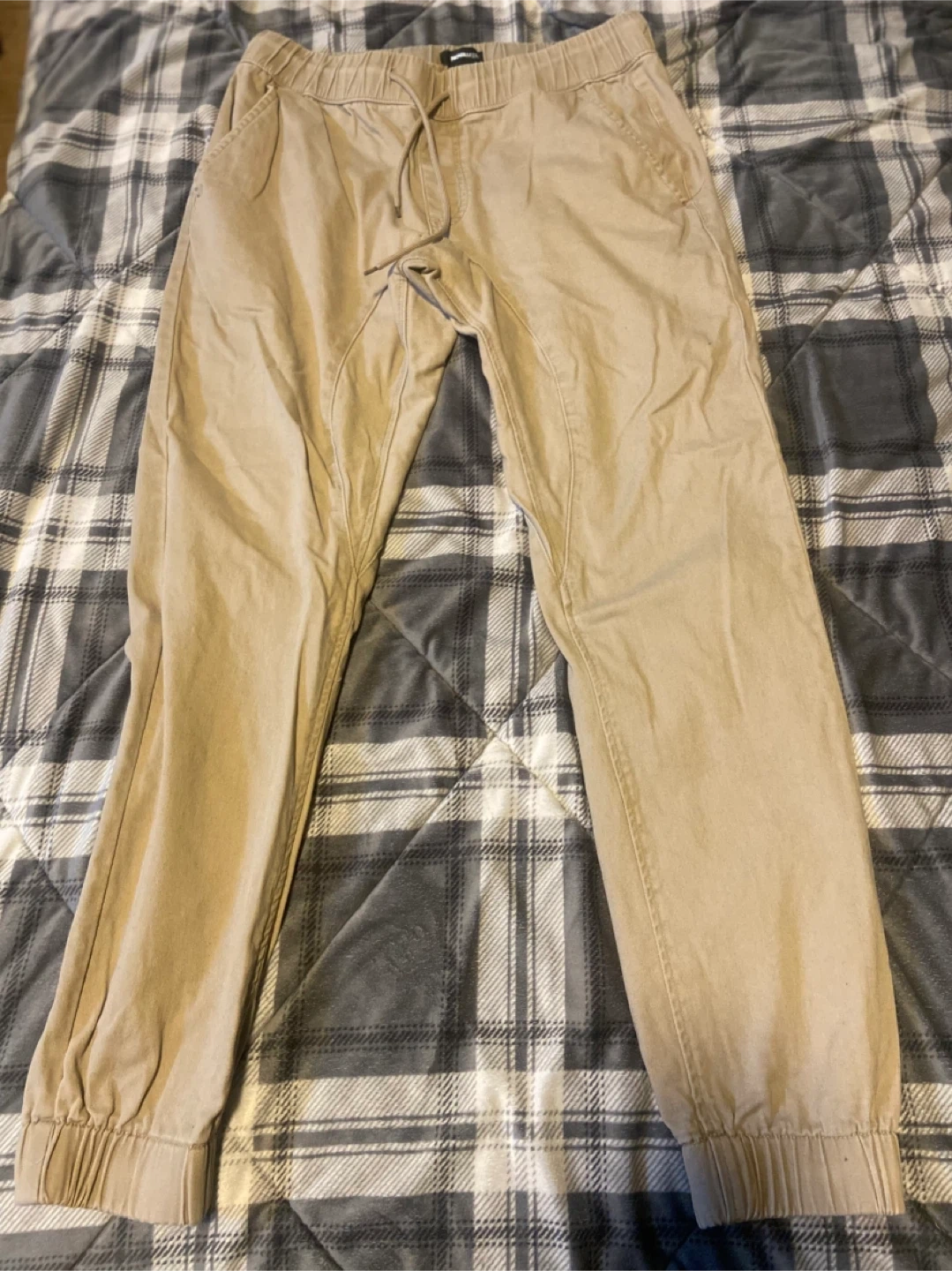 Mens Fashion Nova Pants Size Medium. The pants are pre-owned. There is very minor pilling. The size of them are a men’s medium but the waistband does have some stretch. It is a slimmer fit through the leg area, with some stretch near the ankles as seen in the photos. They have 2 side pockets, drawstrings, as well as 2 pockets on the backside. Contact me if interested.