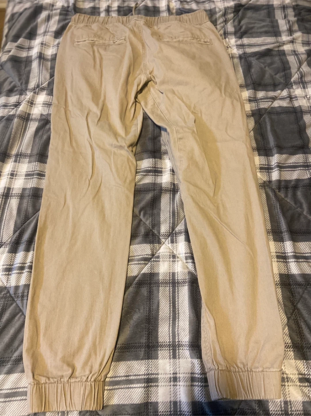 Mens Fashion Nova Pants Size Medium. The pants are pre-owned. There is very minor pilling. The size of them are a men’s medium but the waistband does have some stretch. It is a slimmer fit through the leg area, with some stretch near the ankles as seen in the photos. They have 2 side pockets, drawstrings, as well as 2 pockets on the backside. Contact me if interested.