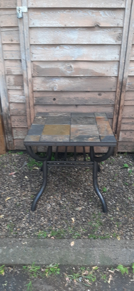 This is a side table with a granite top and a metal frame. It would be a great addition to any patio or living room. Similar tables are selling between $80-$100. Priced for a quick sale at $48. Yes it's available if you see the ad up. FCFS. Cash only.