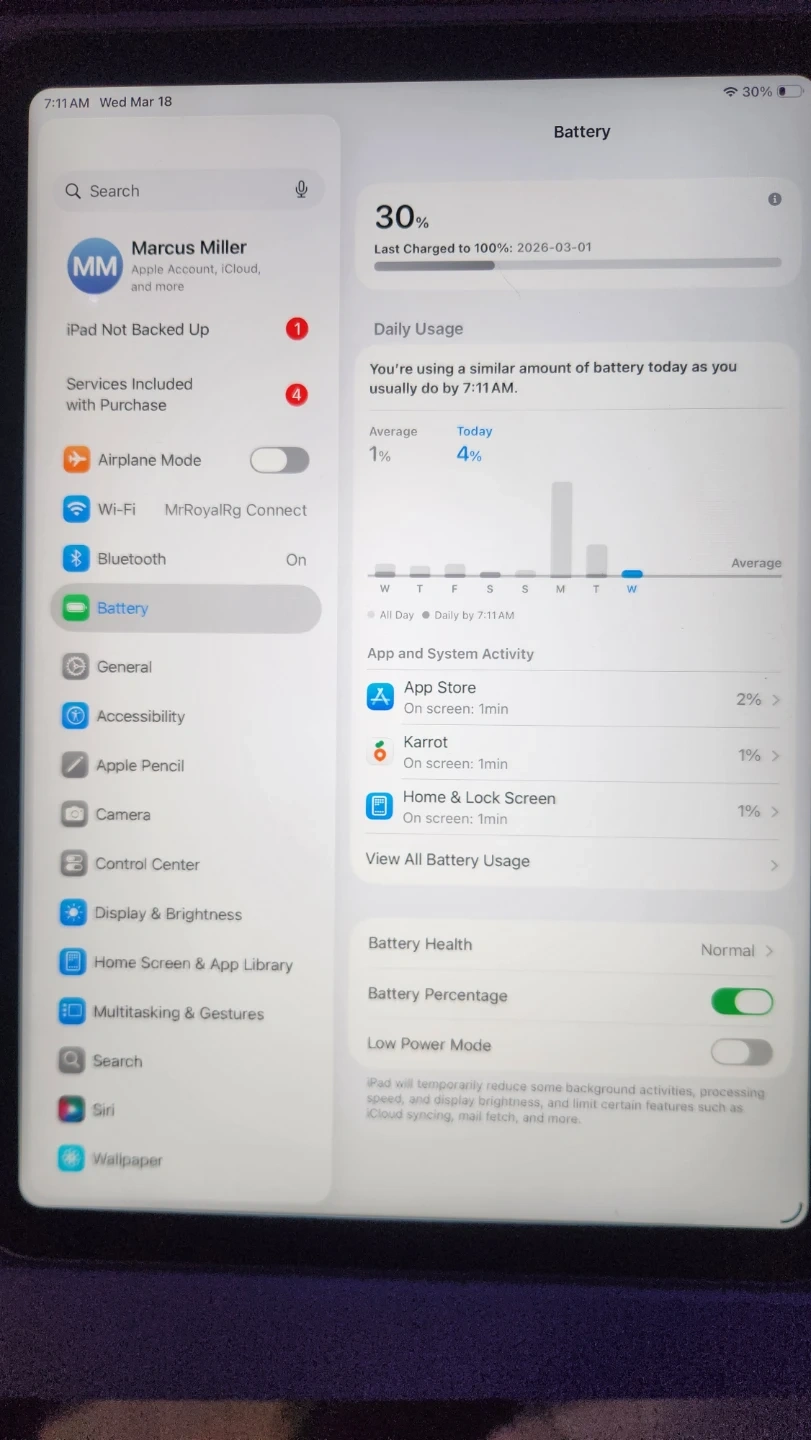 Apple iPad (11th Gen) with 128GB storage and Wi-Fi connectivity. It's in silver and comes with its original box. This iPad runs iPadOS 26 and has a 10.2-inch Retina display. It's perfect for everyday tasks, streaming, and light productivity.