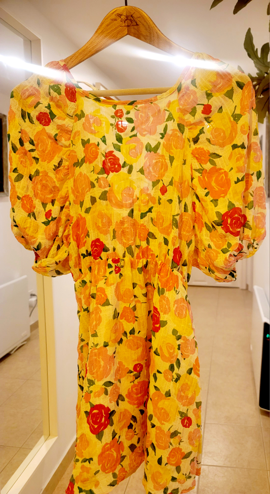 Mango beautiful dress with an all-over floral print. It features a gathered waist and puffy sleeves. Would be perfect for a summer day, you can also wear it to relax at home.