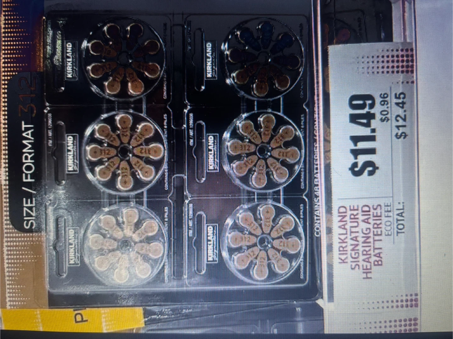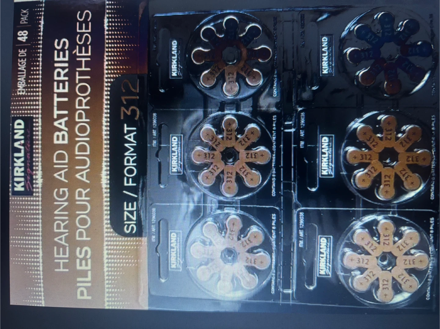Kirkland Signature hearing aid batteries, size 312. This pack contains 48 batteries. Expiry date is 2026-08.