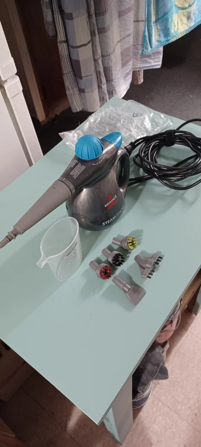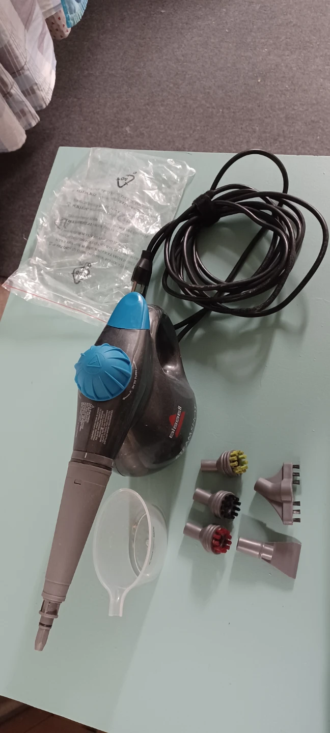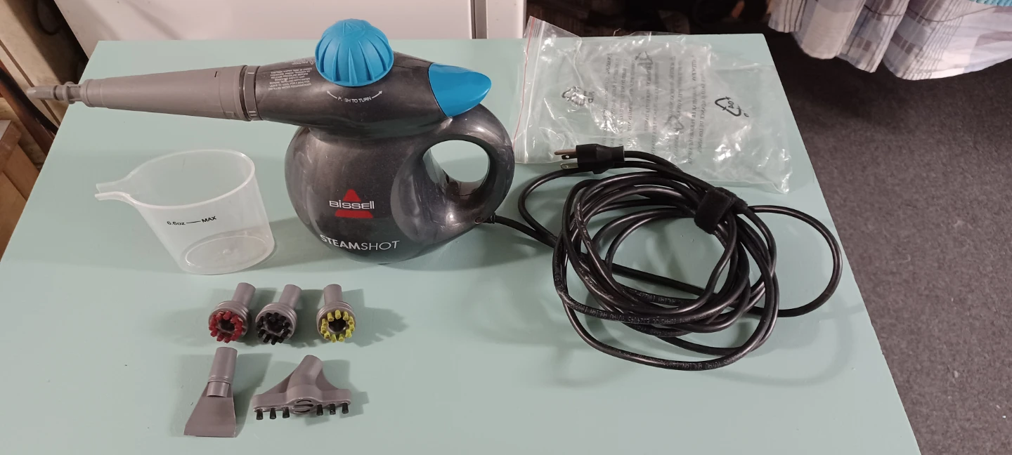 I'm selling a Bissell SteamShot hard surface steam cleaner. It includes all the attachments you see in the photos, as well as the measuring cup. It's in great condition and ready to help you tackle those tough cleaning jobs!