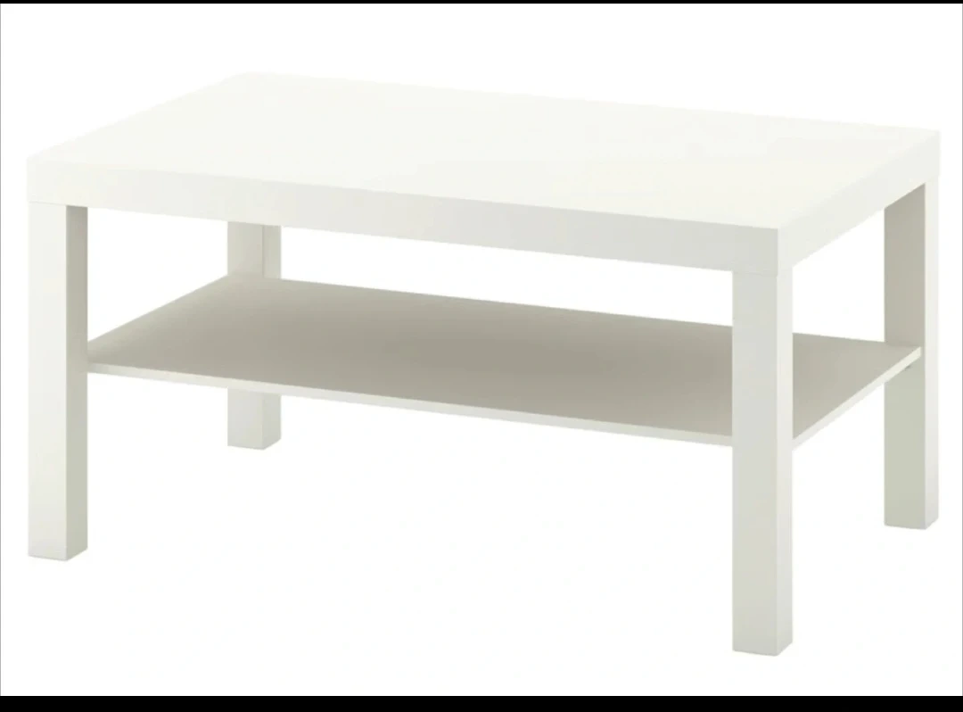 This is a white coffee table with a built-in shelf for extra storage. Its simple design makes it versatile for any living space. It's a great addition for keeping your living room tidy and stylish.