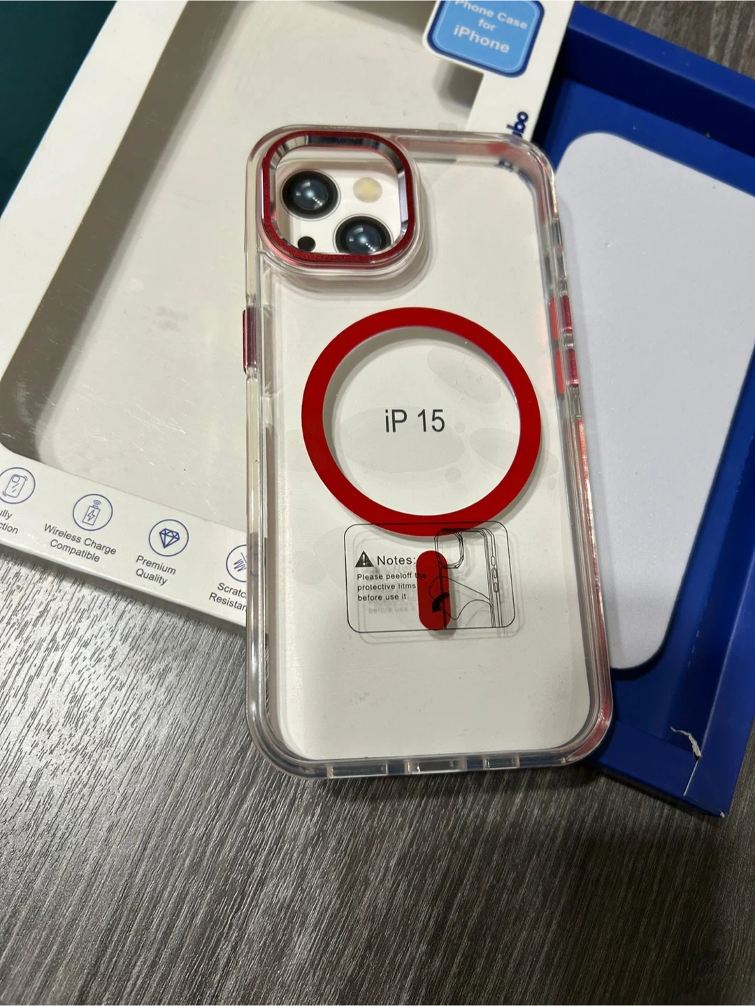 This is a new Bubuo clear phone case designed for the iPhone 15. It offers wireless charge compatibility and scratch resistance. The case comes in its original packaging.