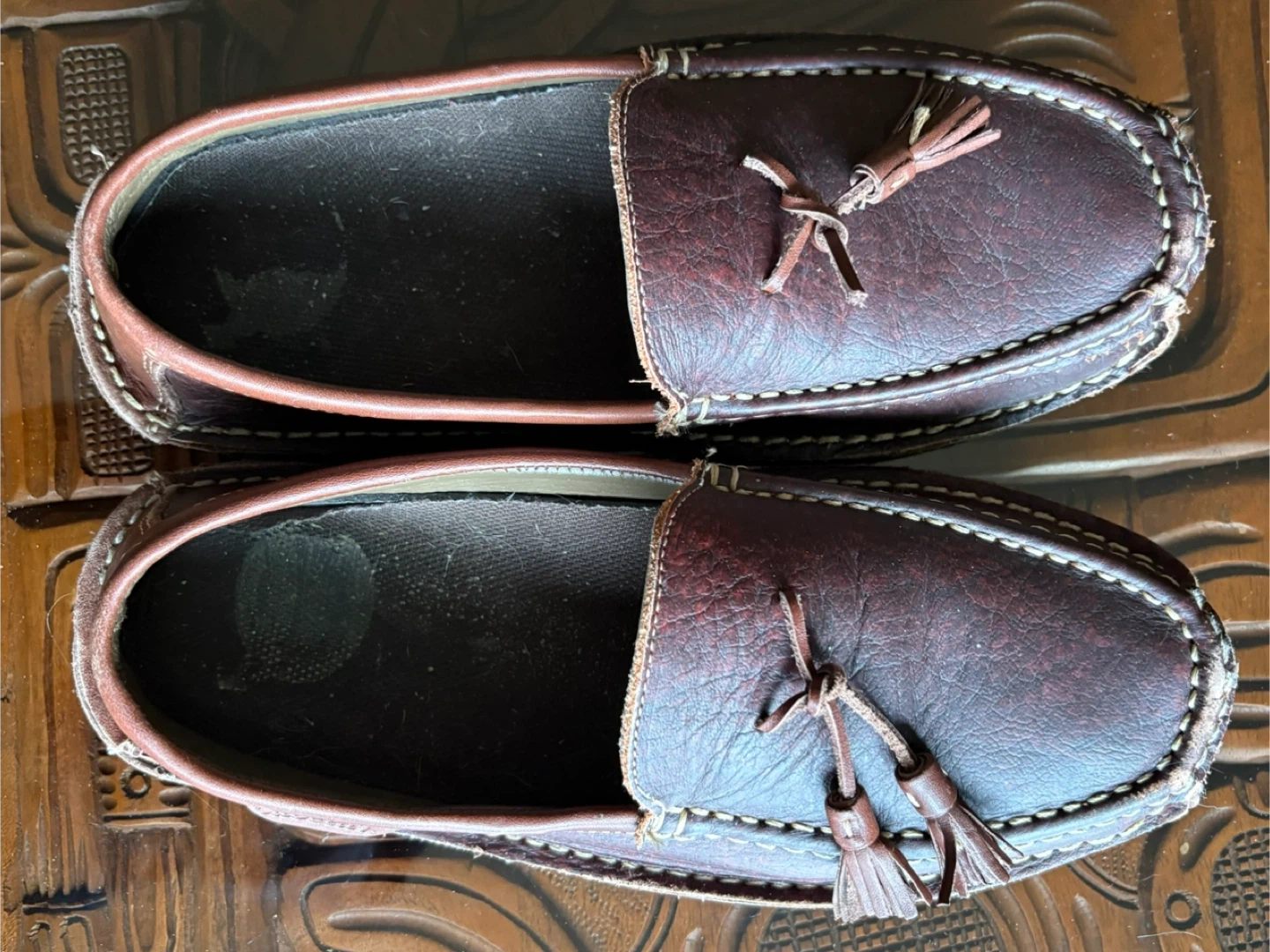 These Cabela's men's driving moccasins are made of genuine leather. They feature a classic loafer style with tassels. The rubber sole provides good grip.