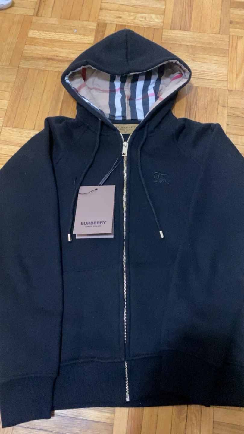 Burberry London England zip-up hoodie. Features the iconic check lining inside the hood. Size S/P fits like xs Includes original tag.looking to get rid of it quickly