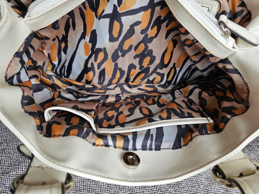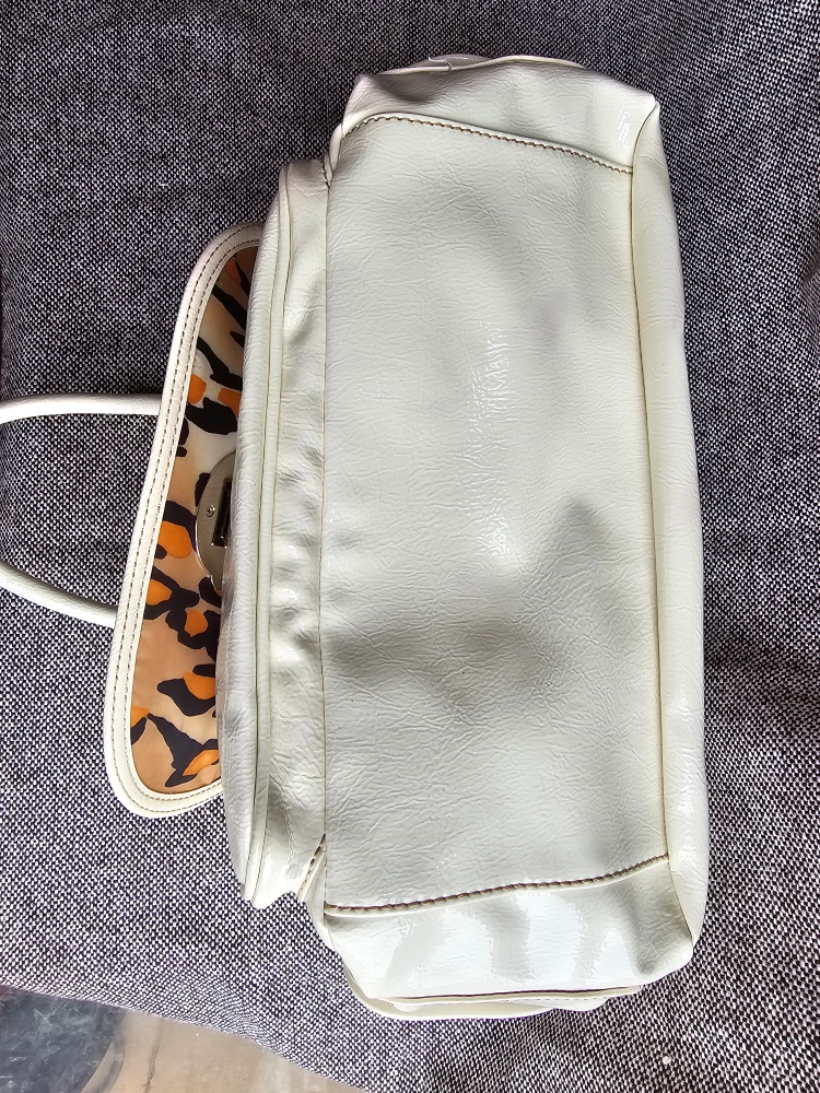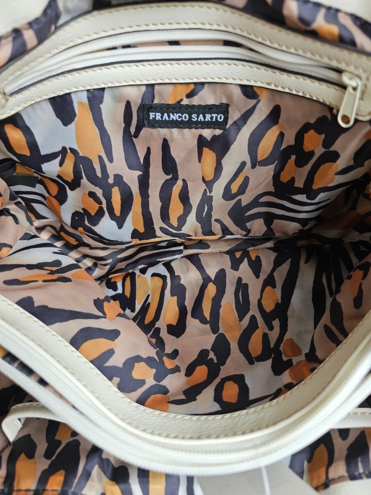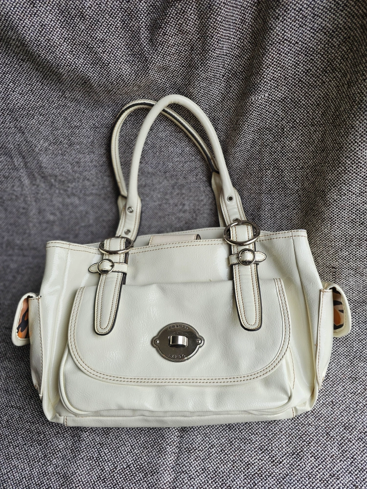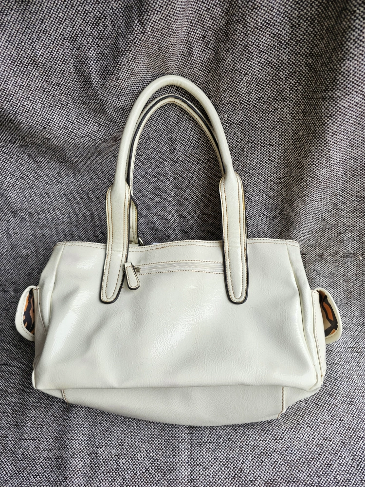 Made by artisinal Italian designer Franco Sarto, this beautiful vintage white purse has a fantastic pop of style with the leopard print lining π π Plus the many pockets make it perfect for all your needs!