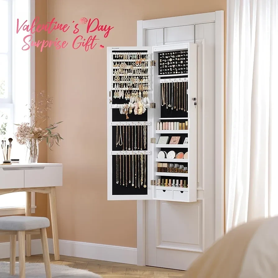 [Wall or Door-Mounted] You can mount the jewelry organizer on the wall with the provided screws or hang this jewelry cabinet over the door using the brackets included—you’ll save your precious floor space either way